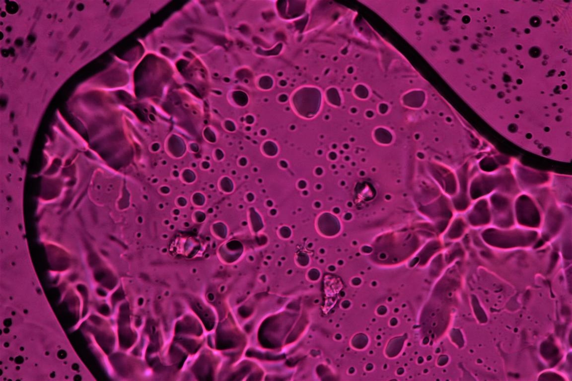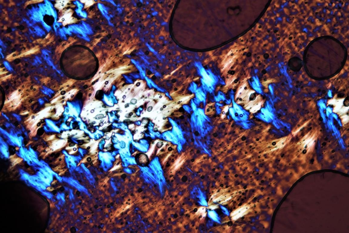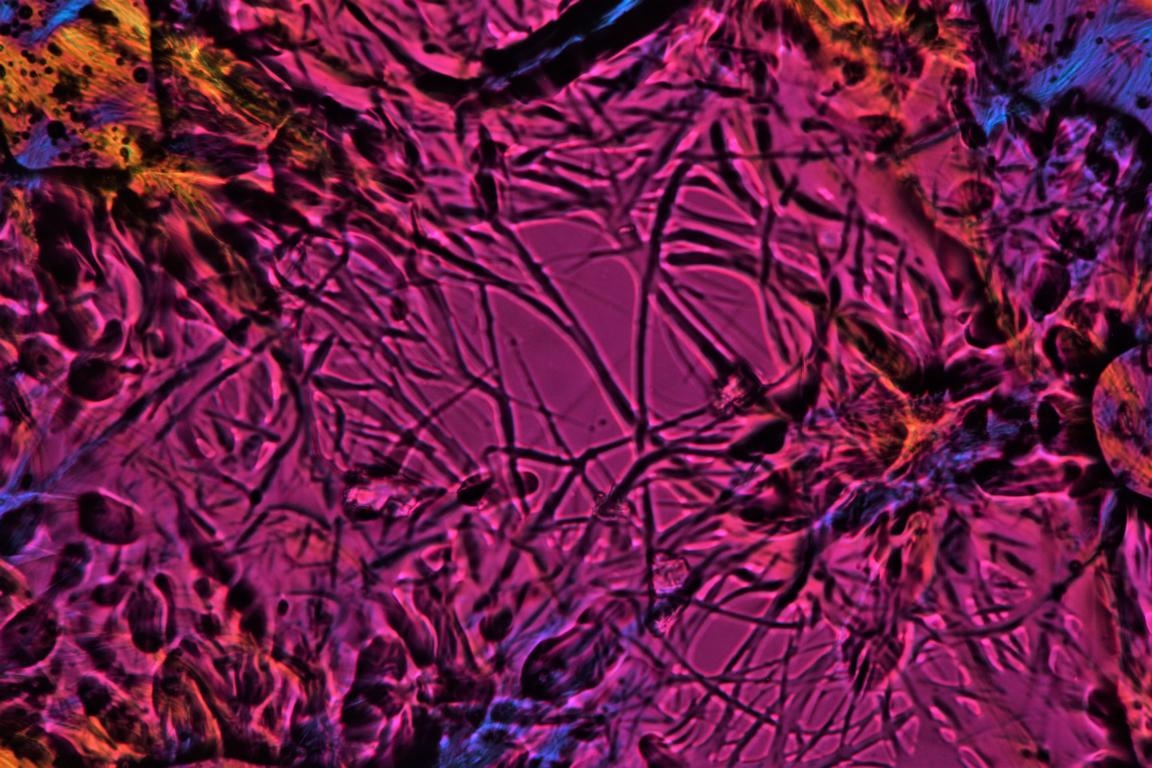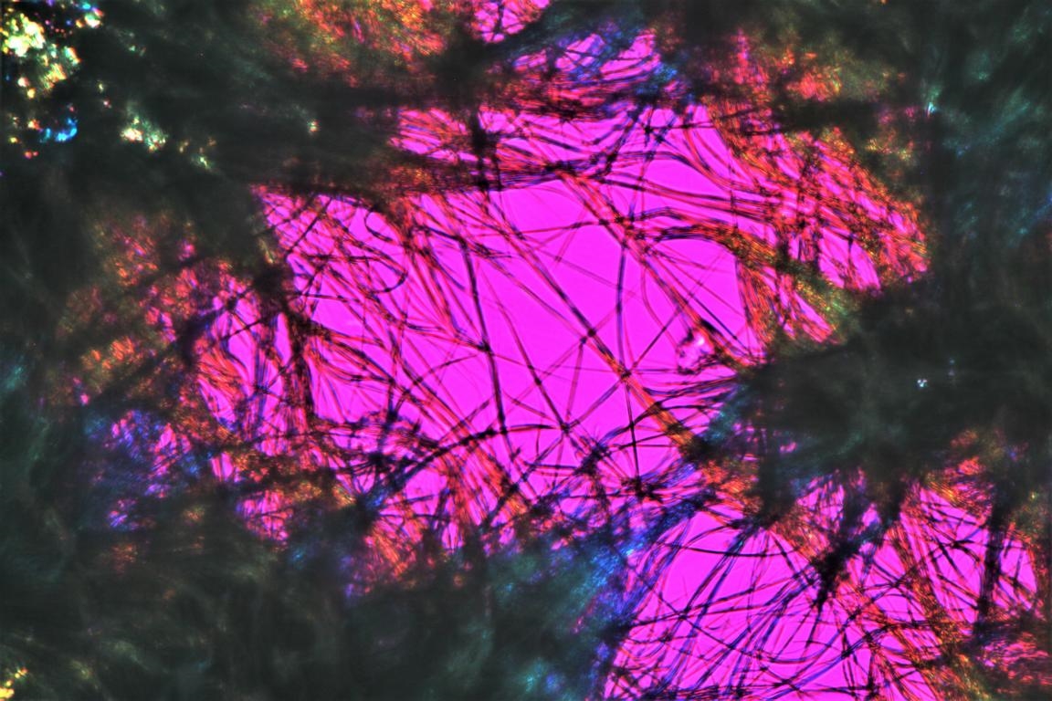 Ich als Biologe würde anhand der vorliegenden, zweifelsohne sehr schönen, Bilder das Präparat lieber an den Chemiker verweisen und Auskristallisierungsphänomene vermuten.
