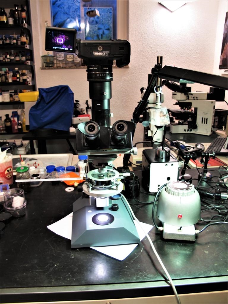Nun gehts weiter. Erst drei Bilder am Stemi Durchlicht im Hellfeld, dann mit Pol und Pol plus Lambda