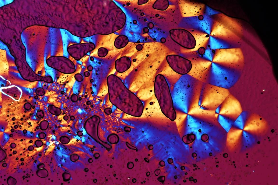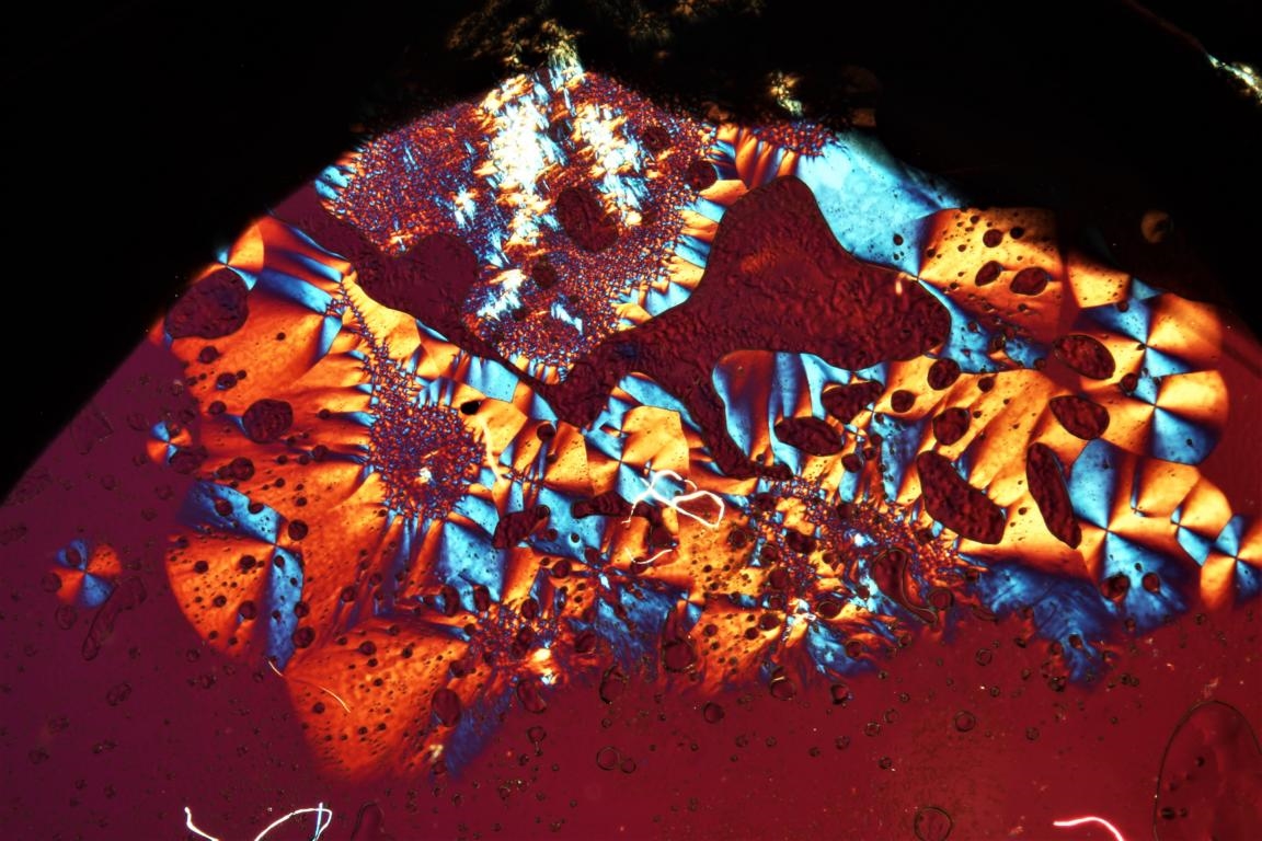 Nun kommen die Bilder des Versuchs. Ich habe langsam hochgeheizt und im Durchlicht Pol plus Lambda (damit es heller wird) Fotos gemacht 20°; 70° ; 72°; 75°; 78°;  andere Stelle mit Kristallen, die sich nicht verändert haben. Meine Interpretation: das Glyzerin wirkt als Lömi, das die Kristalle weitgehend bei relativ gelinder Wärme auflöst, es bleiben aber noch welche ungelöst(letzes Bild)