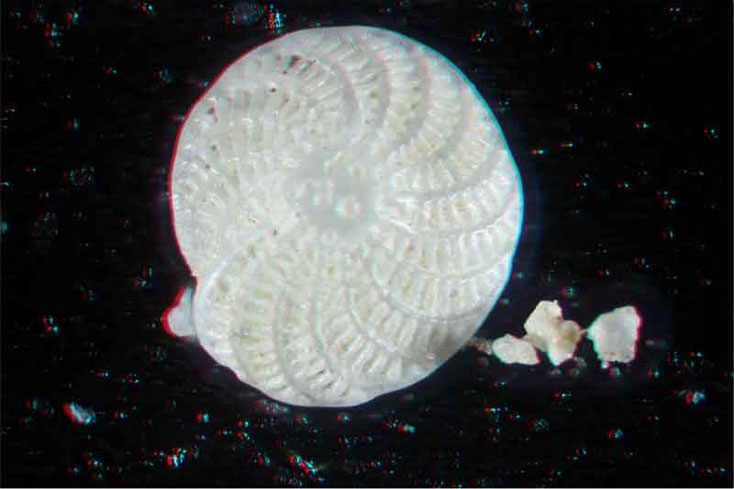 Bild 1 Foraminifere aus Koper/Slowenien Art: Elphidium crispum (Linnaeus, 1758) 3D, mit Anaglyphenbrille ansehen