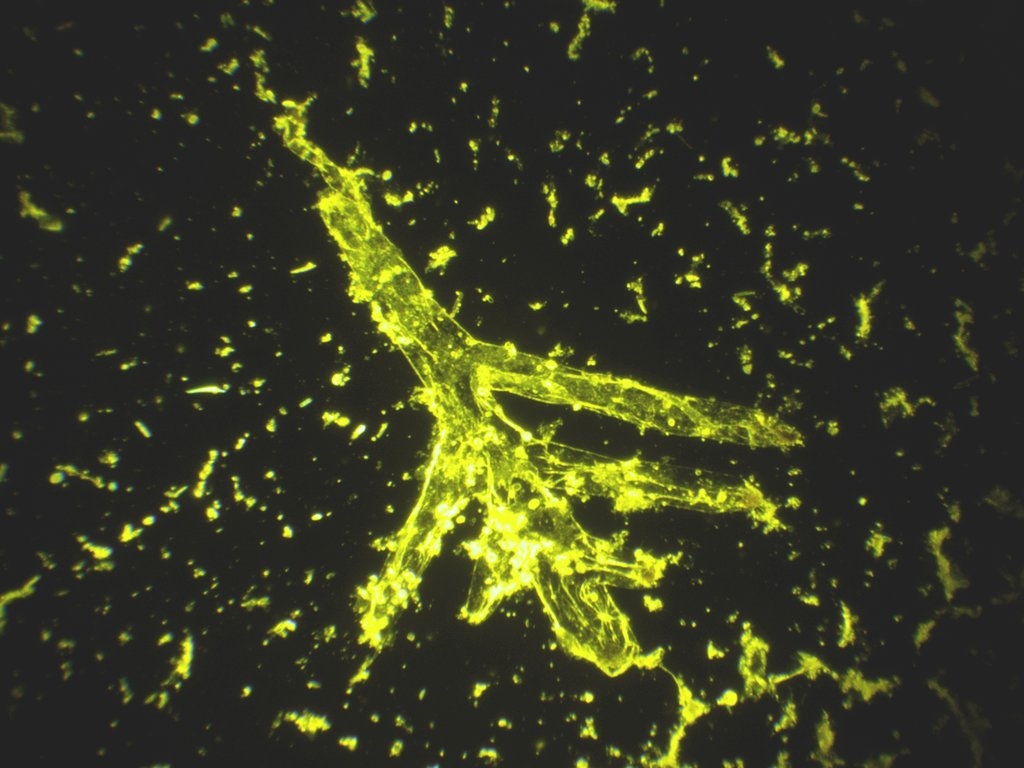 Moosteilchen mit aufsitzenden Diatomeen (DF Farbe)