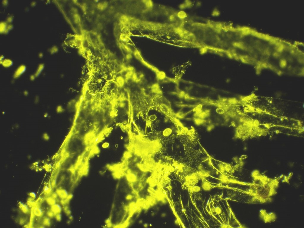 Um zu prüfen, ob aus ,,See-Gras", analog aufbereitet, tatsächlich ein anderes Spektrum an Diatomeen gewonnen wird, habe ich eine Handvoll ,,See-gras" (getrocknetes, in dest. Wasser gequollenes Material) eingesetzt.