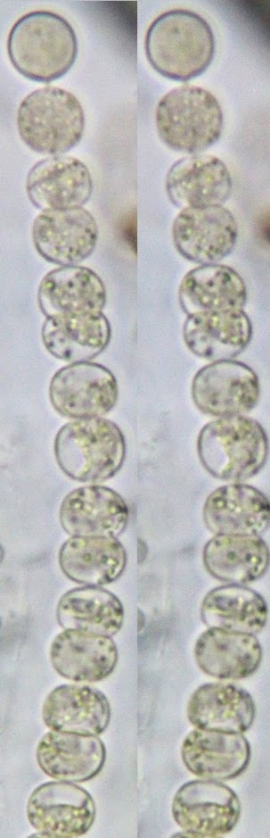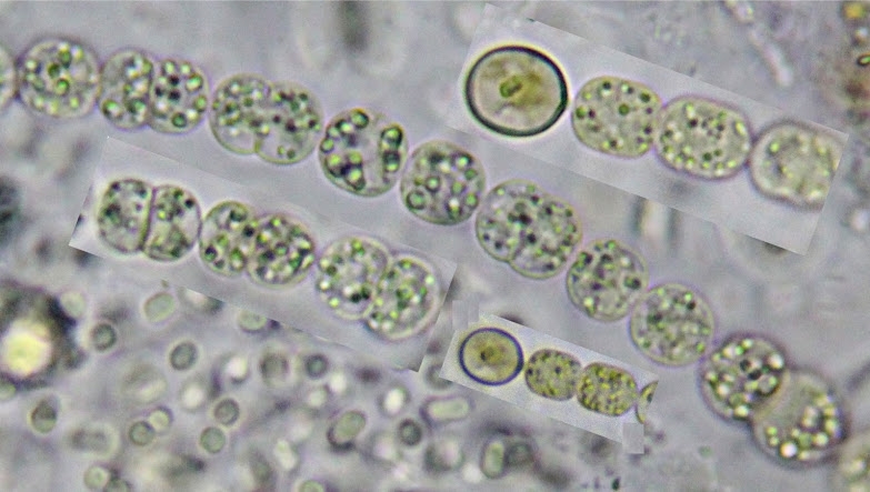 Mangels eigener Bilder und eigenem Material hatte ich Schwierigkeiten, Nostoc und Anabaena zu unterscheiden.