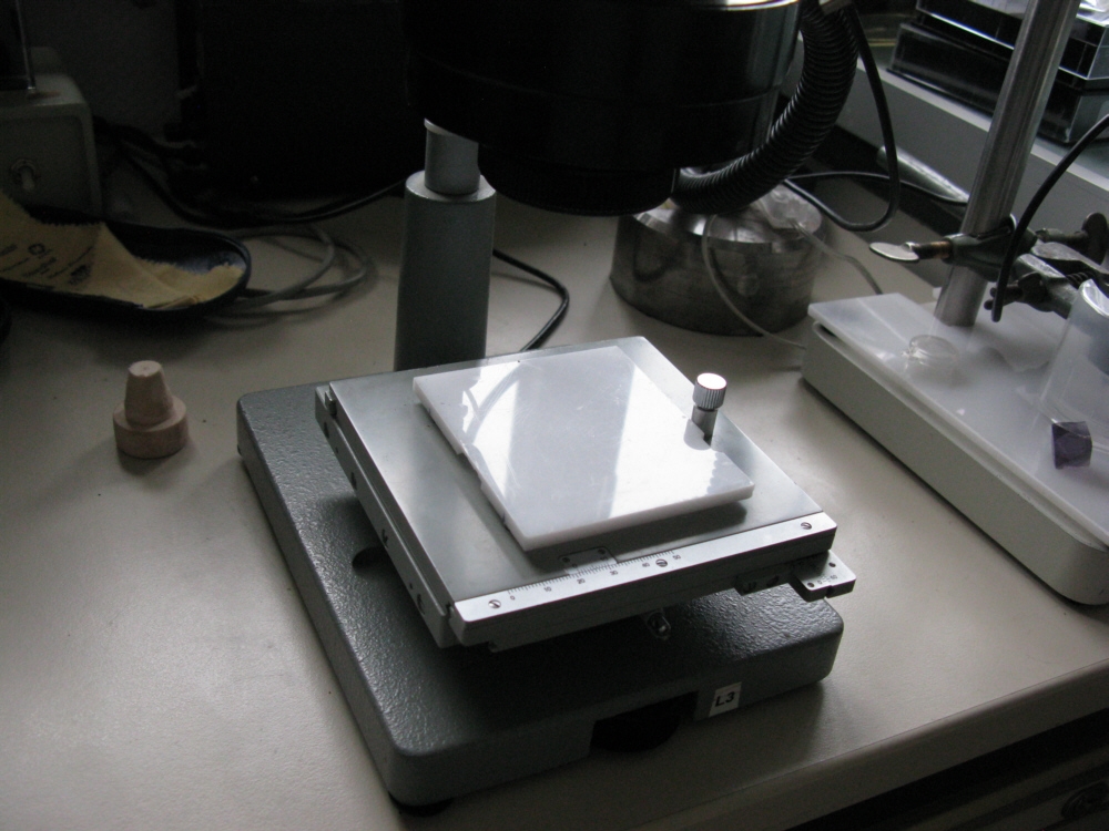 so etwas braucht man nicht. Was hast du denn für Fossilien, und wie oft machst du das denn, dass ich so eine Investition überhaupt lohnen würde? Diese Kreuztische werden ja nur sehr selten angeboten und sind sehr teuer. Ich hab zwar alles mögliche an Stemi-Zubehör, aber trotz gelegentlicher mikropaläontologischer Auslesearbeiten so etwas noch nicht gebraucht/bzw. mir gekauft. Ich lese grundsätzlich Mikrofossilien auf einem Uhrgläschen aus, dass ich mit der linken Hand halte, verschiebe, und gegebenenfalls als Ersatz für den Feintrieb etwas kippe. Dadurch ist die rechte Hand zum Auslesen frei, man muss nicht ständig neu am Mikroskoptrieb Scharfstellen.