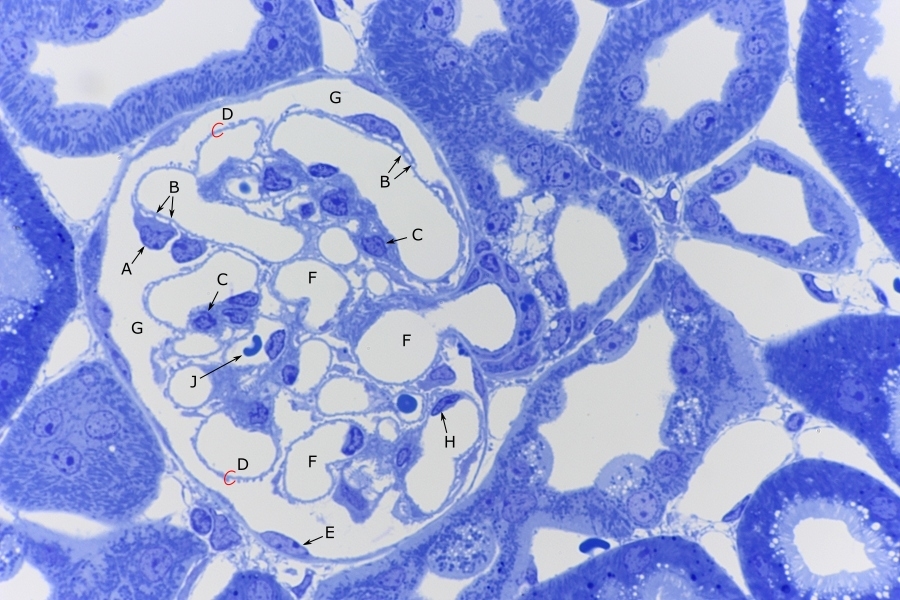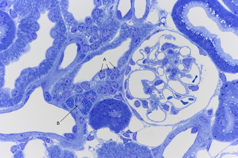 HISTOLOGIE: Nierenkörperchen, Podozyten, Riesenmitochondrien im Semidünnschnitt
