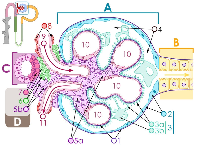 A = Zellen der Macula densa (https://de.wikipedia.org/wiki/Macula_densa)