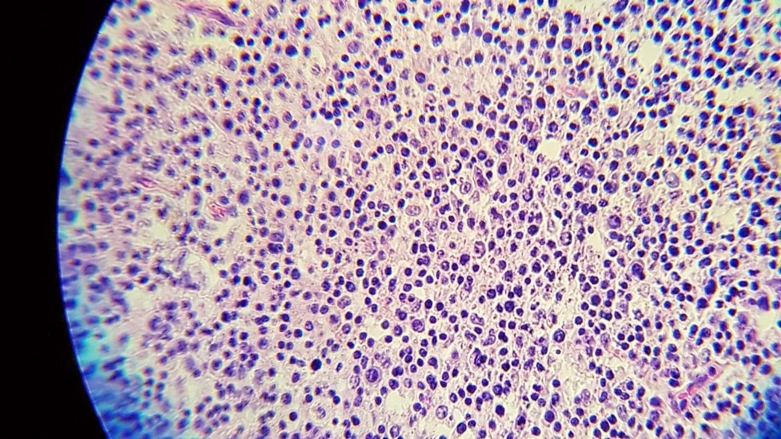 Auf Bild 3 sieht man die Zungenmandel noch etwas vergrößert und auf Bild 4 die Zellen der Zungenmandel, vorwiegend Lymphozyten.