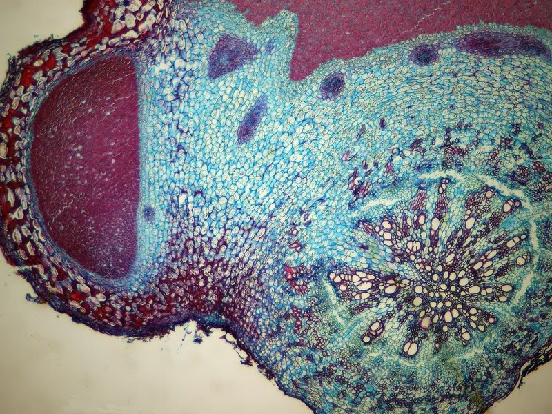 von einem gekauften Präparat (Fa. Microthek) habe ich mal paar Bilder gemacht. Zum Einstieg erstmal eine Platterbse Lathyrus sylvestris sp. mit Blüten und Schoten. Sie wächst häufig an Zäunen und wuchert bis 2 m hoch: