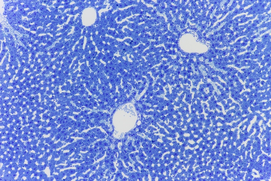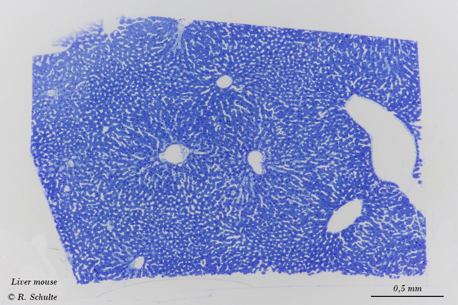 In meiner Sammlung habe ich einige über 50 Jahre alte (10µ dicke ?) Leberschnitte (Pathologie) mit diversen Färbungen u.a. PAS, HE, Silber, Glykogen. Aber da habe ich bis jetzt nichts derartiges gefunden.