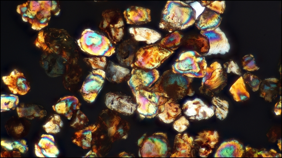 Meine Schwester war auf Urlaub in Australien und hatte eine Probe von das rote Sand mitgenommen. Ich möchte hier gerne ein zusätzliches Bild zeigen in diesen (mit Zustimmung von Heiko) ) schöner Beitrag. Dunkelfeld, 10er Achromat.