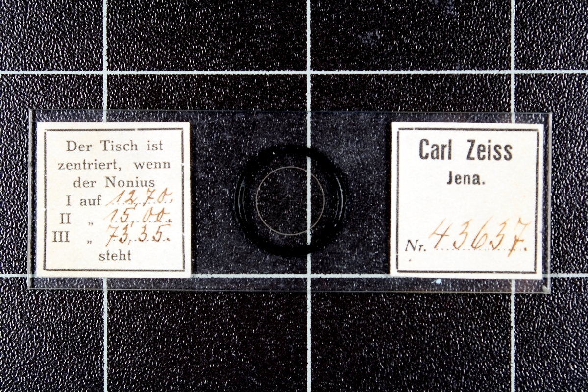 solche Platten sind auch von Zeiss West massenhaft im Umlauf. Ich habe einige davon hier herumliegen. Meines Wissens gehören diese Platten jeweils zu einem ganz individuellen Drehzentriertisch und geben eben an, bei welcher Stellung der Nonien genau der Tisch, zu dem die Platte gehört, zentriert ist. Mit dieser Platte kann man also nichts anfangen, wenn man den dazugehörigen Tisch nicht hat.