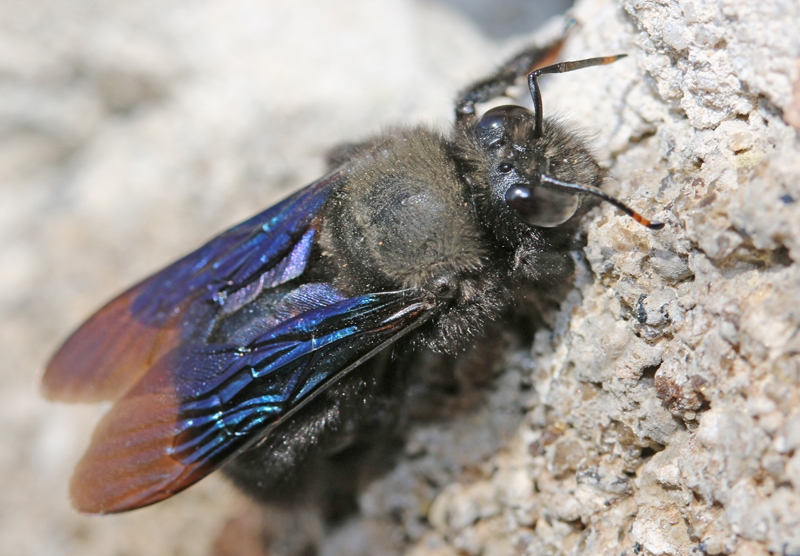 ich sehe Xylocopa violacea eigentlich nur einmal im Jahr während ihrer Suchflüge, um eine Nisthöhle zu finden. Einmal gelang ein Foto, als ein Tier morgens zum Aufwärmen ruhte.