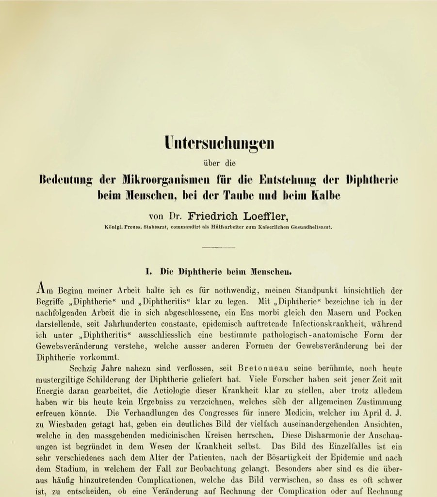 Abb.2  Ein Durchbruch in der Diphtherie-Forschung. 1884 veröffentlich Friedrich Loeffler seine wegweisende Arbeit zum Erreger der Diphtherie.