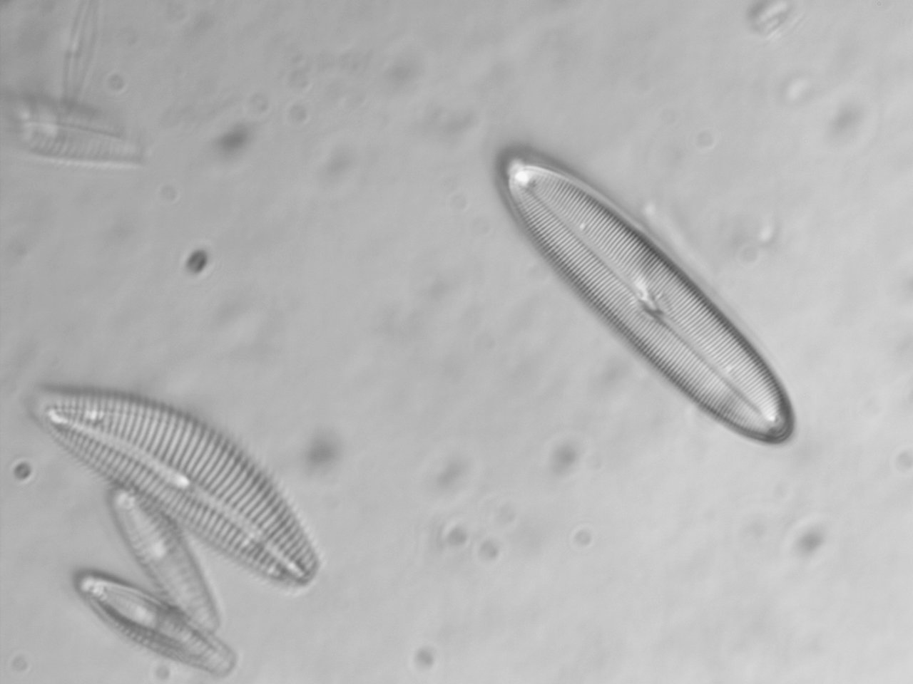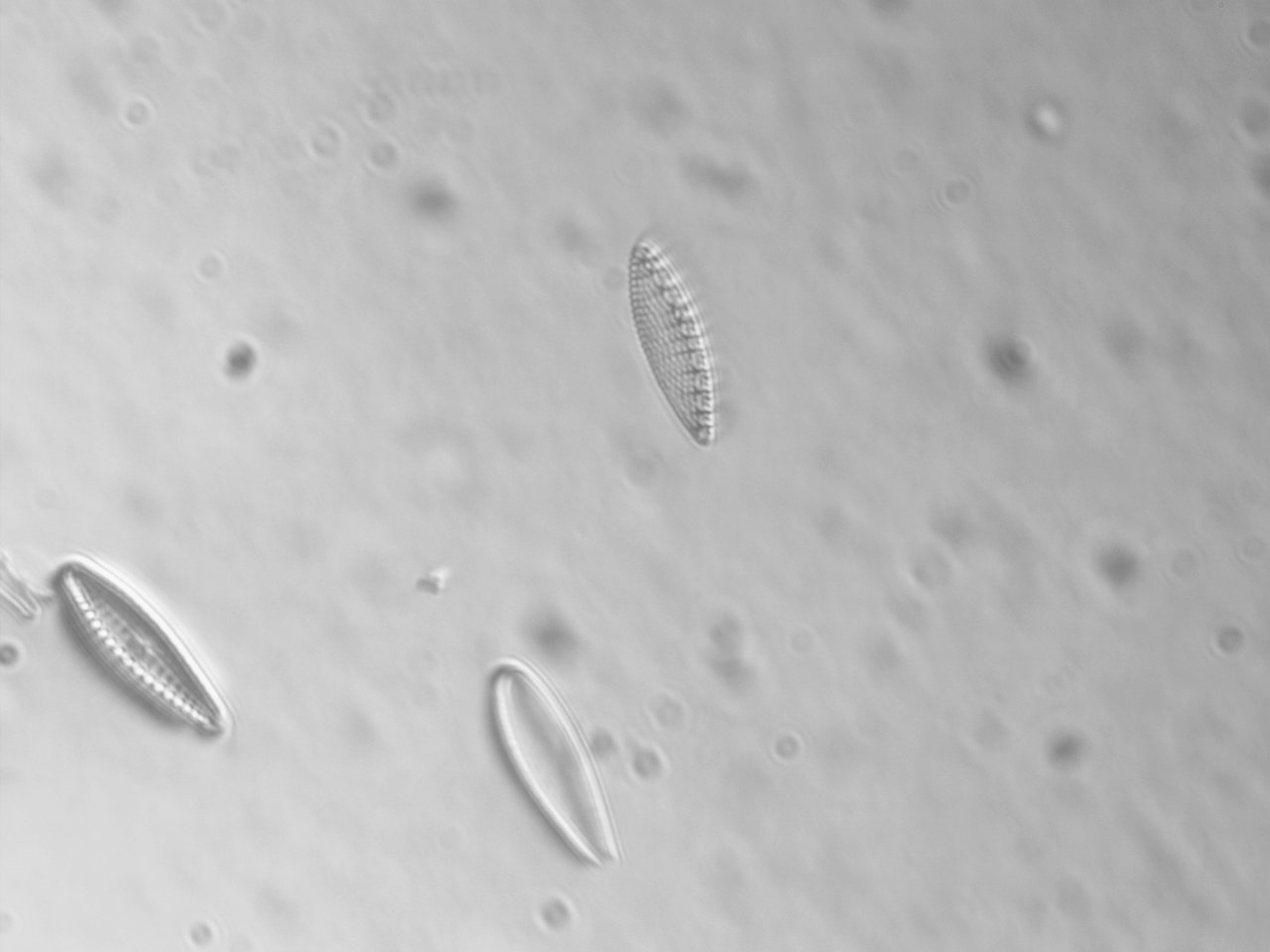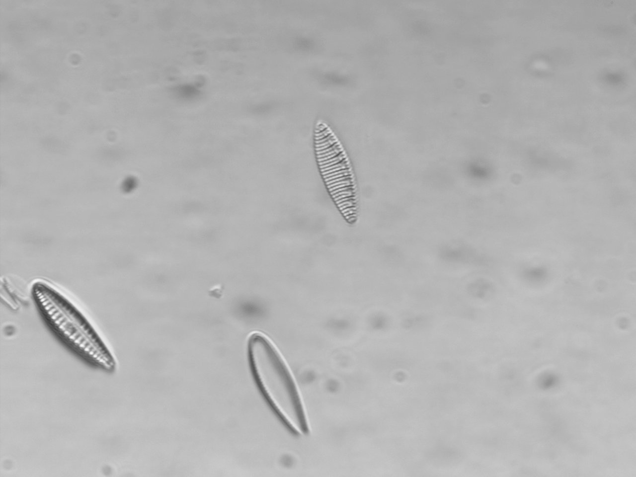 ich habe noch einige Bodensee-Präparate von H. Ullrich. Die Diatomeen sind wirklich klein, aber man findet schon interessante Arten. Ich wage mal zwei Bestimmungen: Die D. im ersten und zweiten Bild oben rechts ist eine Nitzschia alpina und die kreuzförmige im dritten Bild sicherlich eine Fragilaria leptostauron. Bei den anderen halte ich mich lieber mal zurück.