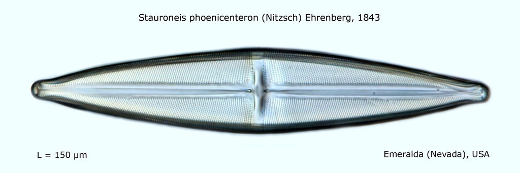 Besonders gefällt mir die ,,Stauroneis phoenicenteron", weil selbst die sehr feine ,,Querstruktur"  hervorragend zu erkennen ist. (Wenn ich mich nicht täusche, habe ich die unter den ,,sehr kleinen Bodensee-Diatomeen" gefunden. Kann das sein? )