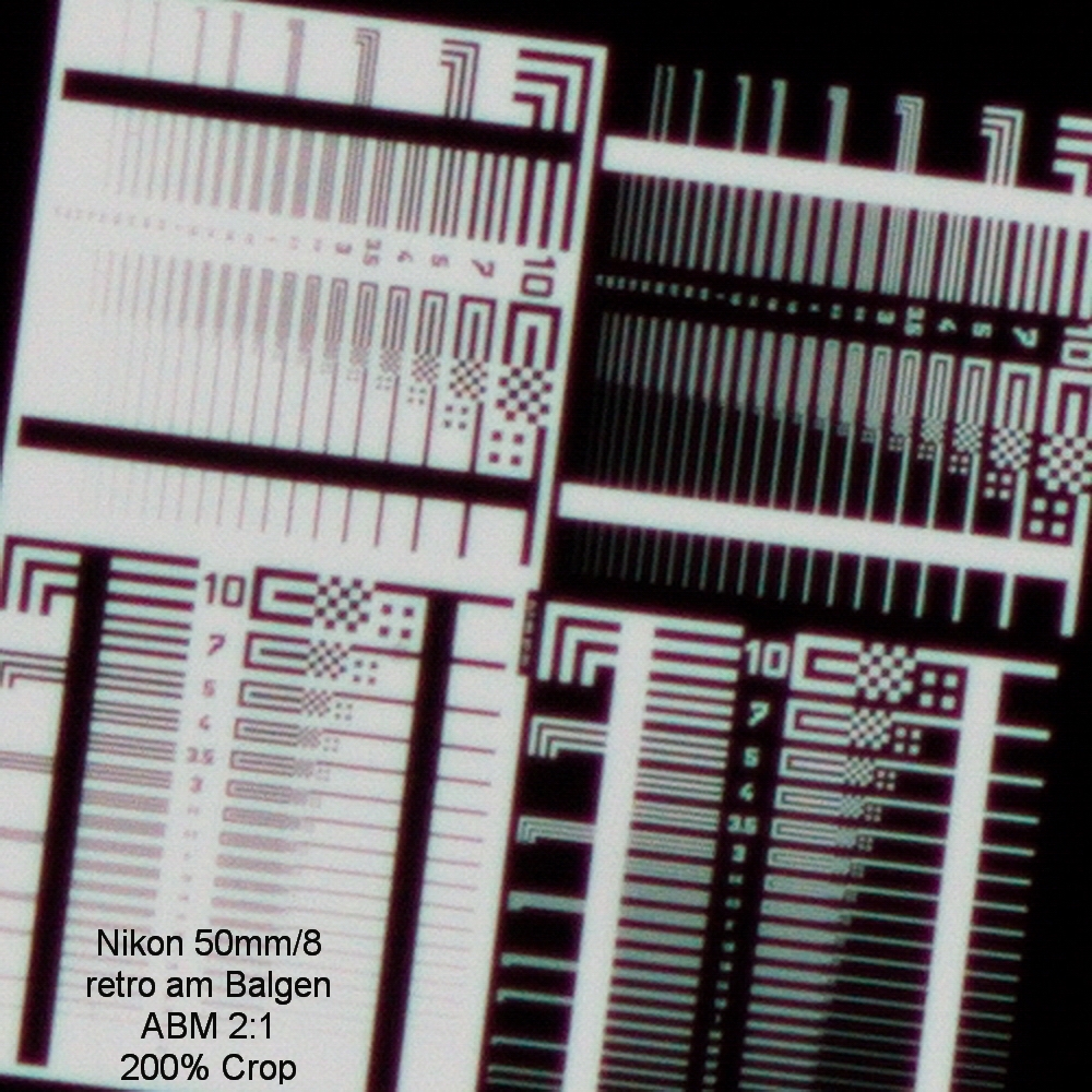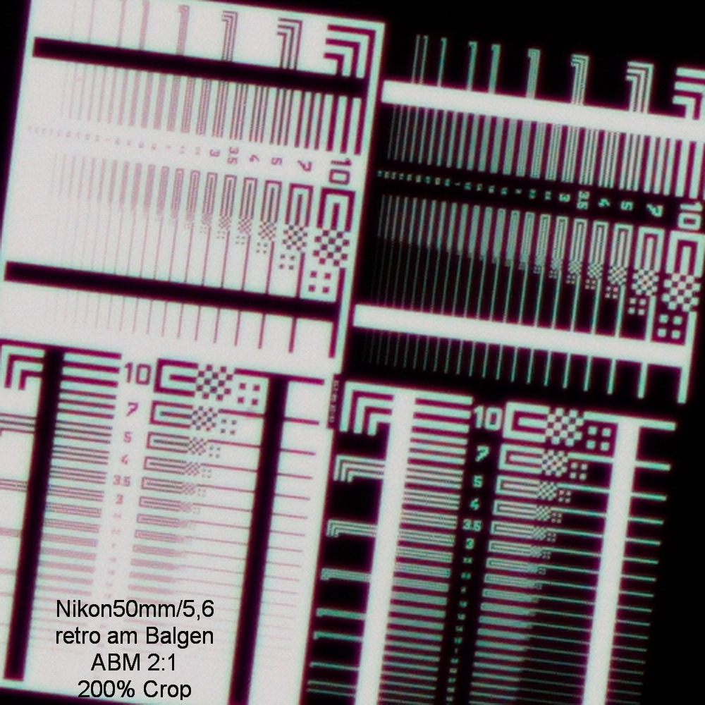 wenn beim Testtarget z. B. die Liniengruppe 2 aufgelöst erscheint, berechnet man die Auflösung, indem man 500 Lp/mm durch 2 teilt: 250 Lp/mm.