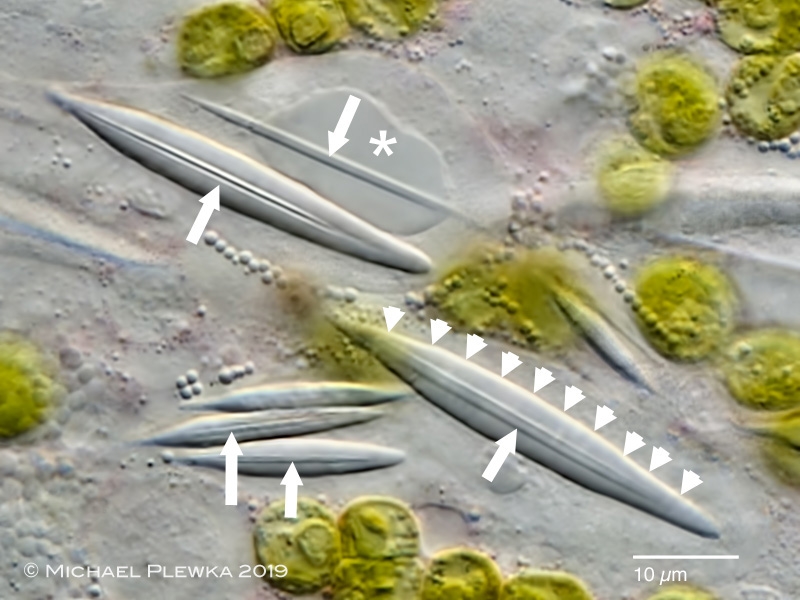 vielen Dank für diesen schönen Beitrag. Ich hätte diesen Fund einfach als "irgendeinen" grünen Strudelwurm abgetan. Auf welchen Weg hast Du die Bestimmung geschafft? Ich finde das Bild letzte Bild mit den Sagittocysten spannend. Die Sagittocysten scheinen intrazellulär gebildet zu werden. Man erkennt offensichtlich voll ausgebildete Sagittocysten, aber auch schmale Nadeln, die in einer Art flüssigkeitsgefüllter Vakuole vorliegen. Sind das eine zweite Art von (nadelförmigen) Sagittocysten oder sind es die Bildungszentren der Sagittocysten, in denen man die Sagittocysten im Aufbau sieht? Wären diese "Vakuolen" dann nicht ein Teil des Golgi-Apparates?