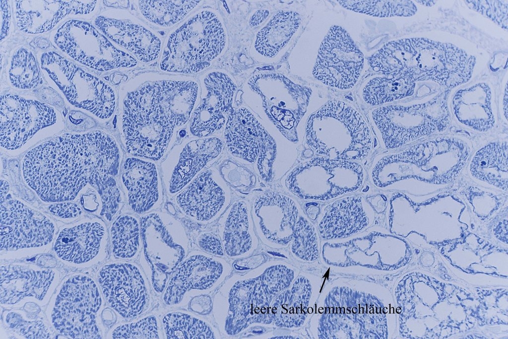 Zerfall der Muskelfasern, leere Sarcolemmschläuche