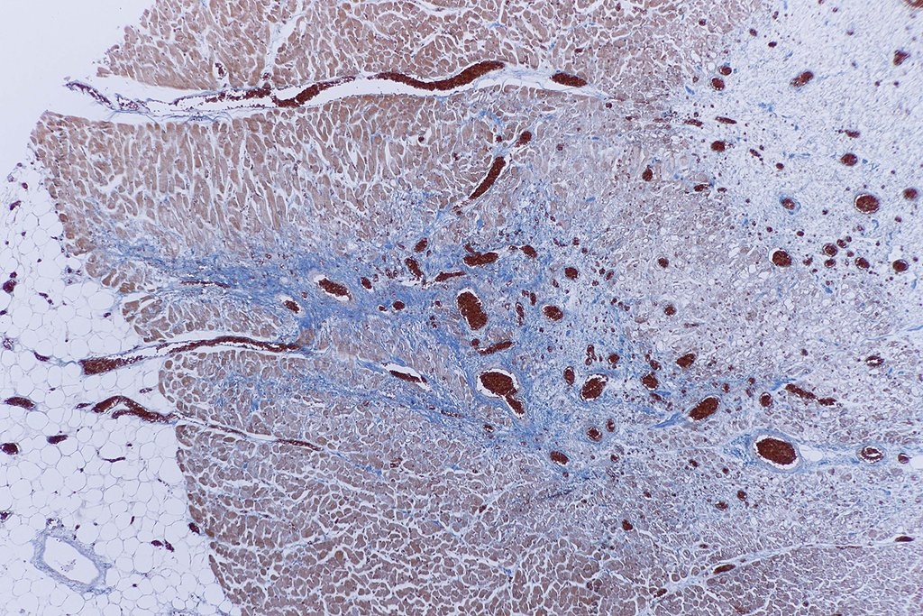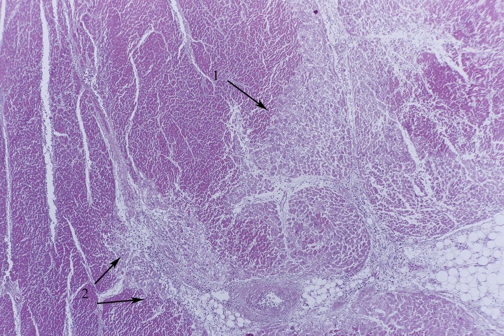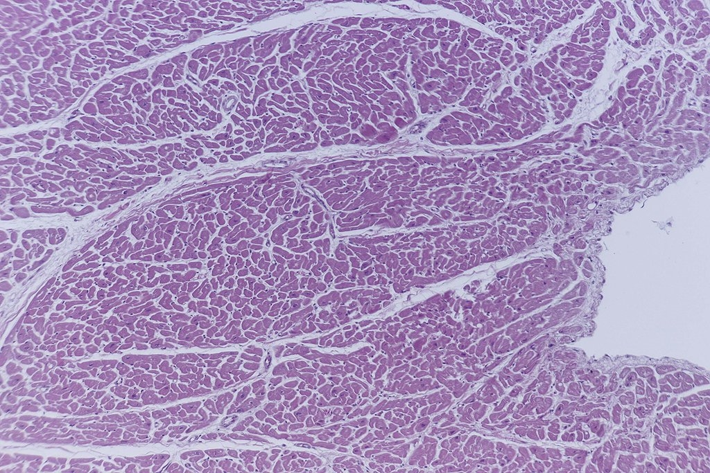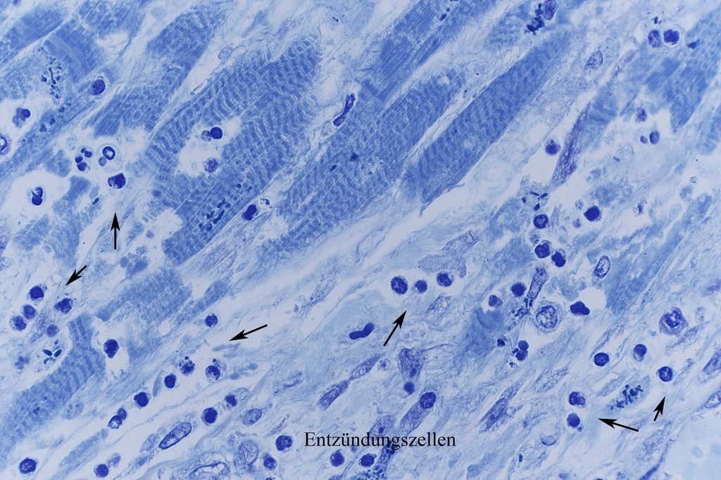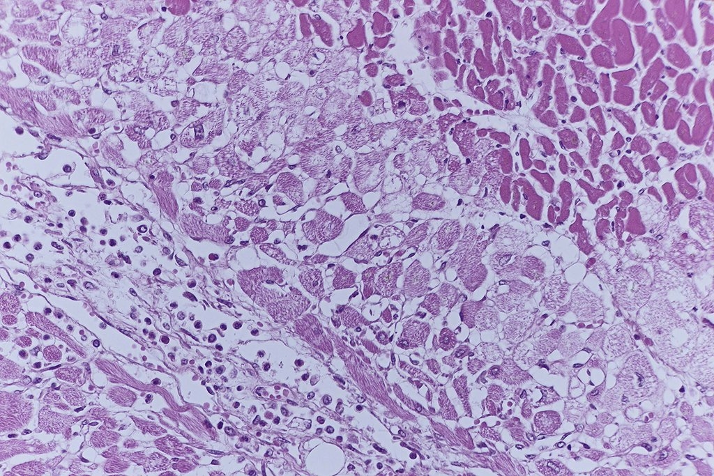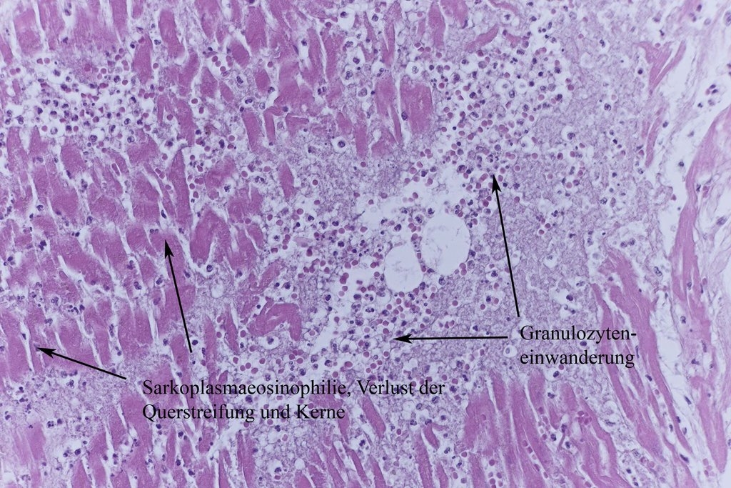 Verlust der Herzmuskelfaserstruktur mit Hypereosinophilie und Verlust der
