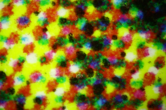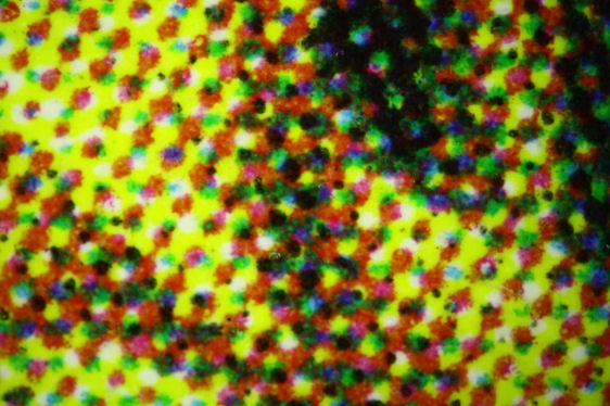 Abb. 2    Druckraster einer farbigen Postkarte mit HD EpiplanNEOFLUAR 5x/0,15 oo/0 Dunkelfeld-Auflicht
