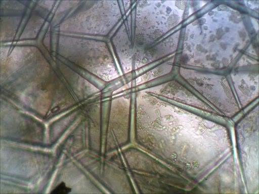 Ich tippe auf irgendwelche Mineralien in einer Pflanze. In Schnitten von Efeu habe ich einmal mineralische Nadeln gesehen, allerdings keine Sterne. Jedenfalls sind die "wunderhübsch".