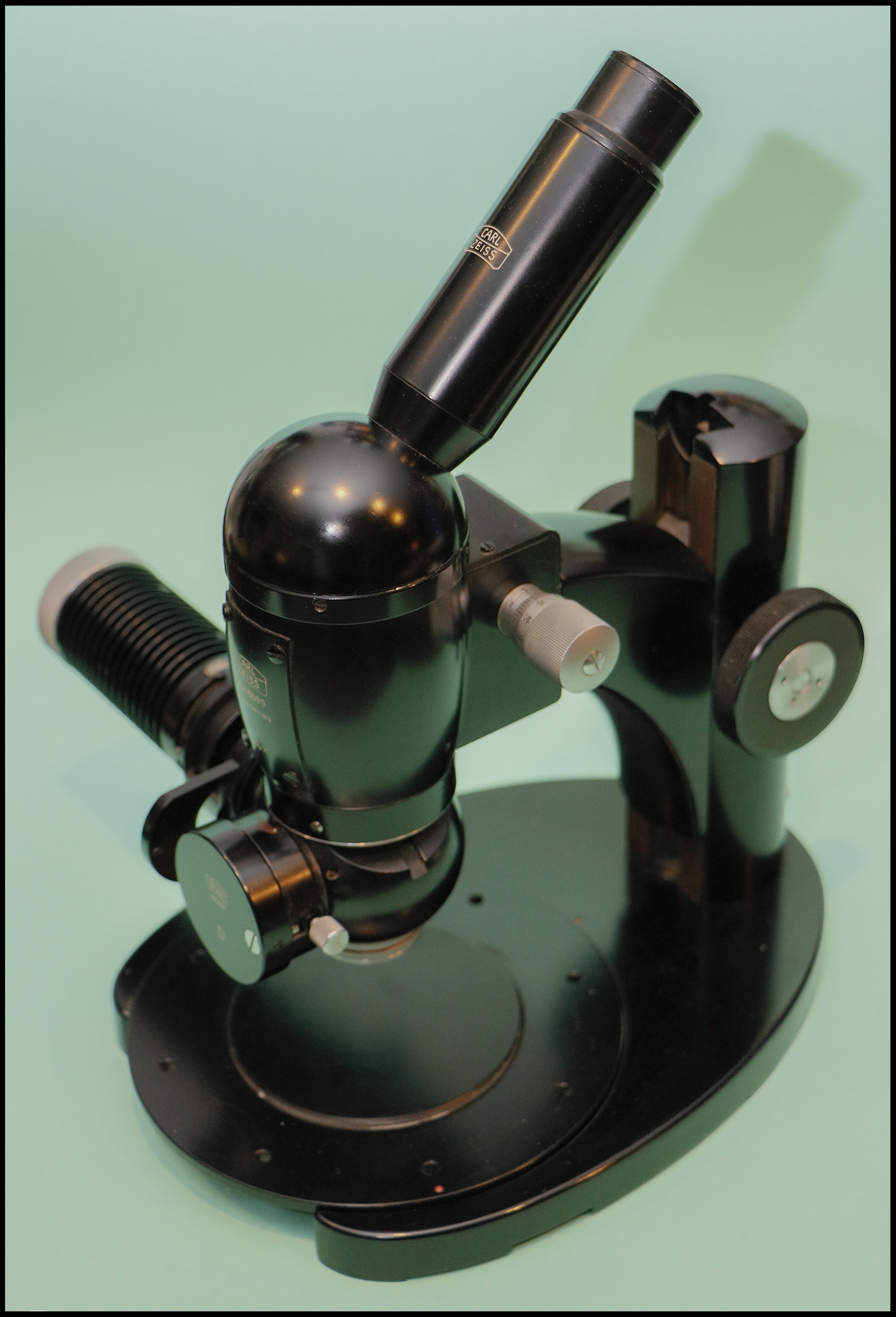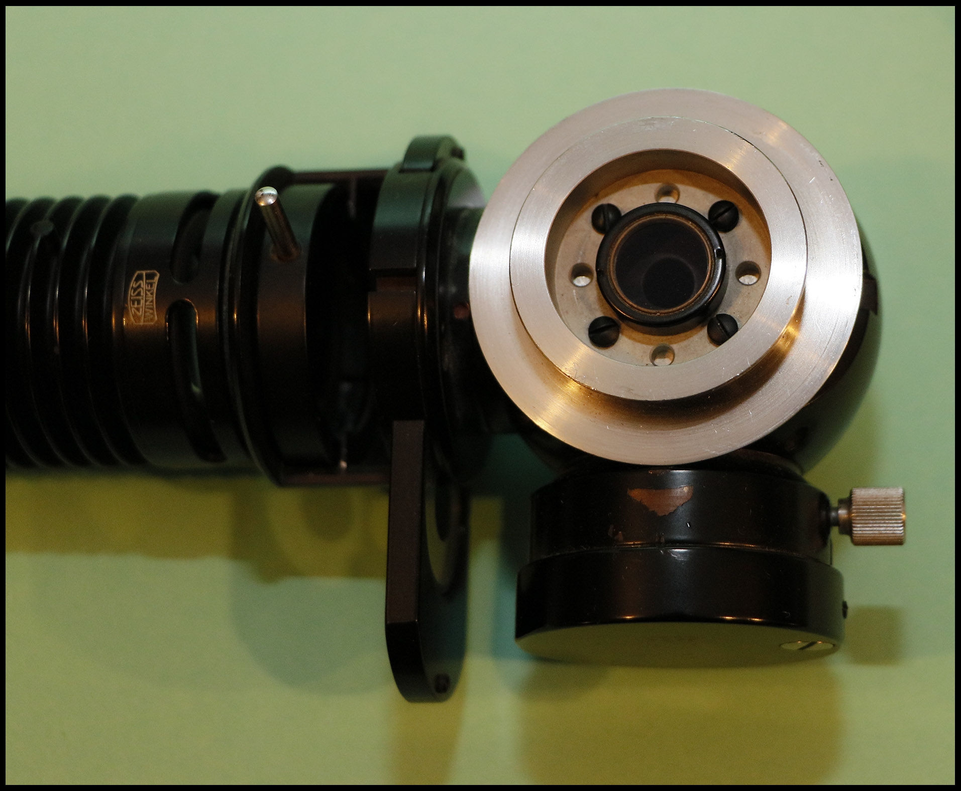vielen Dank für die schönen Bilder von diesem angenehm "stilreinen" Auflichtmikroskop. Deines ist – ausweislich seiner Seriennummer 2053099 – ja noch ein bisschen älter als meines (2053245), und damit noch viel eher aus der Übergangszeit, in der es ein (angenehm) wildes Durcheinander der Zeiss-Winkel- und Carl Zeiss-Embleme gab. Insbesondere das Lampengehäuse ist ein seltener Leckerbissen, wenn auch möglicherweise etwas weniger gefällig als die späteren, gerippten Exemplare.