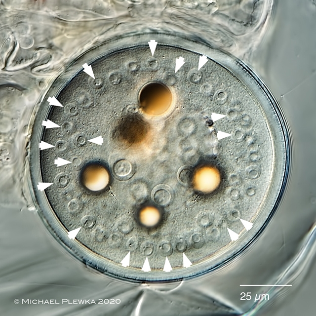 Die Hüllen der Latenzeier von Filinia können mehrere tausen Jahre überdauern und können  deshalb -ähnlich wie Pollenkörner- für paläontologische Fragestellungen genutzt werden. Hier noch ein (etwas älteres) Bild eines Latenzeis:
