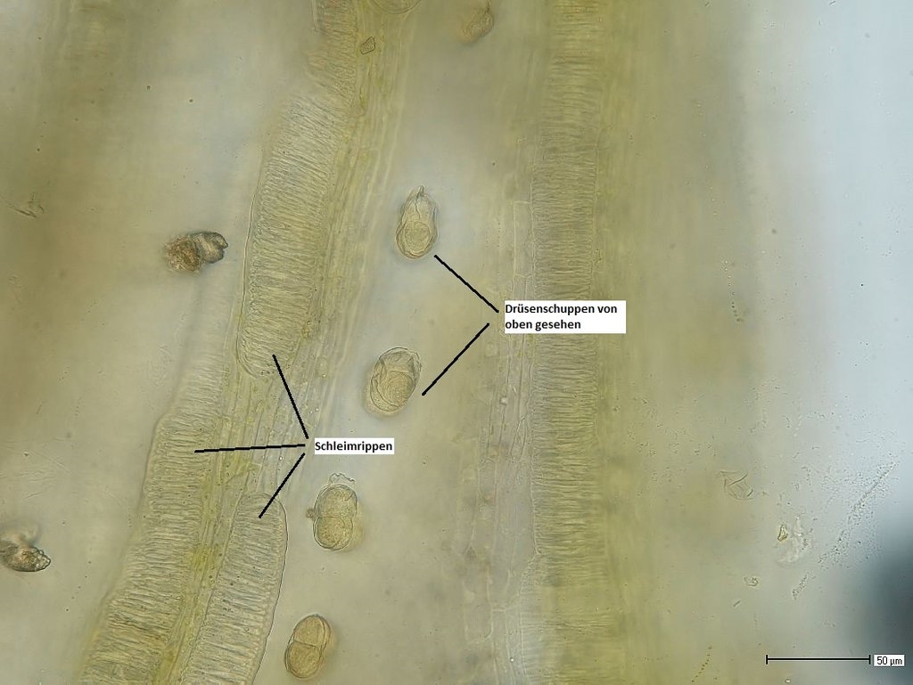Wenn jemand das Glück hat, in seinen Präparaten eine Drüsenschuppe komplett von der Seite zu finden, würde ich mich über ein Bild - gerne auch hier im Thread - freuen.