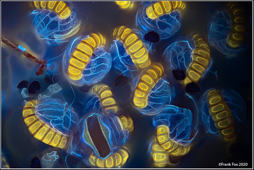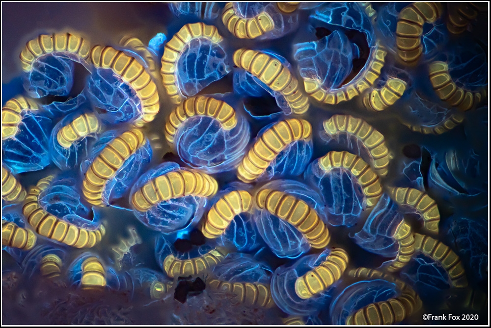 hier ein paar aktuelle Aufnahmen von Sporangien des Wurmfarns, angeregt durch 360nm.