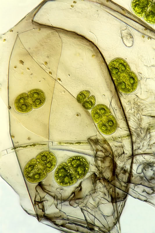 mein Sonntagsbild! Eigentlich nichts Besonderes, aber mir gefiel die Zusammenstellung Cosmarium/Blattfußkrebshülle so gut...