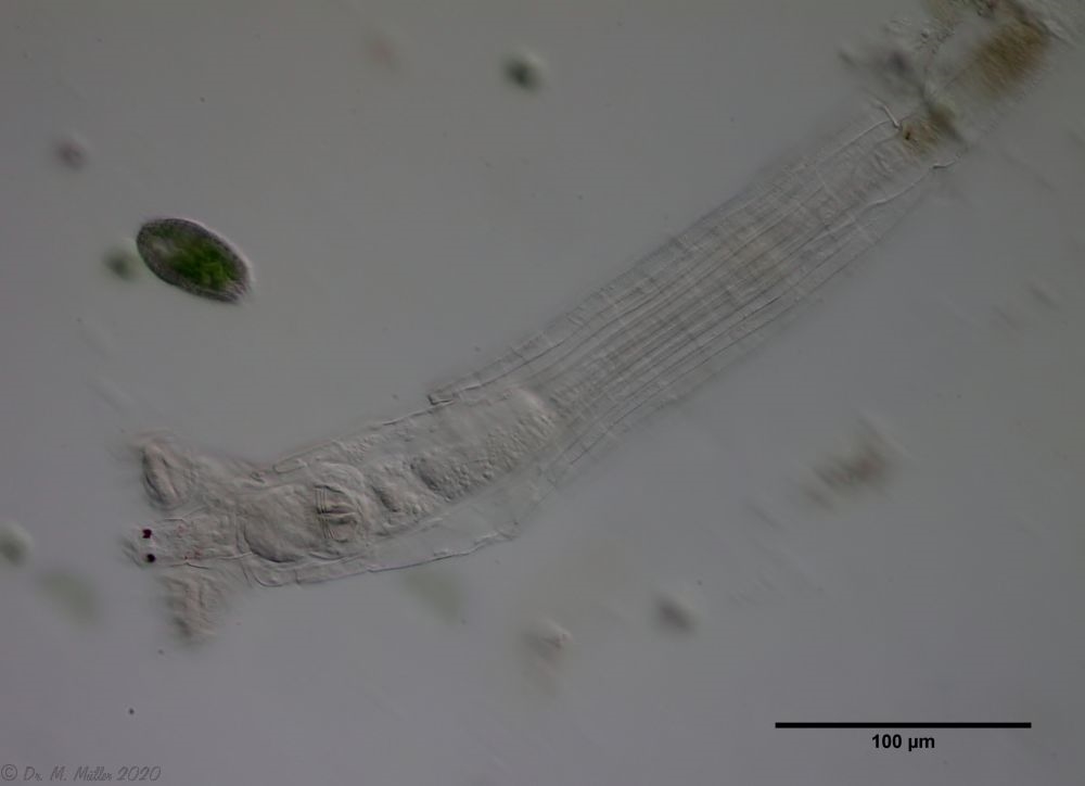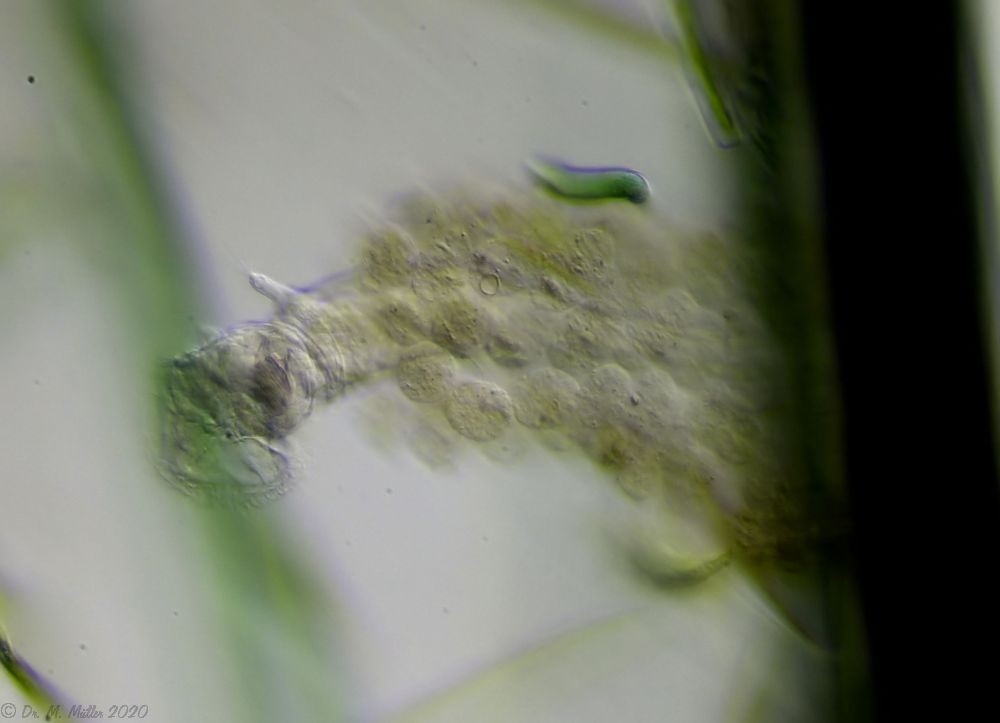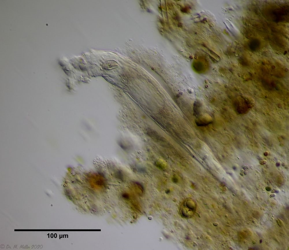 Du hast Recht - alle Beispiele waren aus aquatischen Habitaten (meist Schlammproben), die ich nahezu ausschließlich untersuche. Aus Moos extrahierte Tiere habe ich auch schon in Mikroaquarien untersucht, aber hier sterben die Tiere relativ schnell ab. Wahrscheinlich sind die Lebensbedingungen in den Mikroaquarien einfach zu verschieden vom natürlichen Habitat.