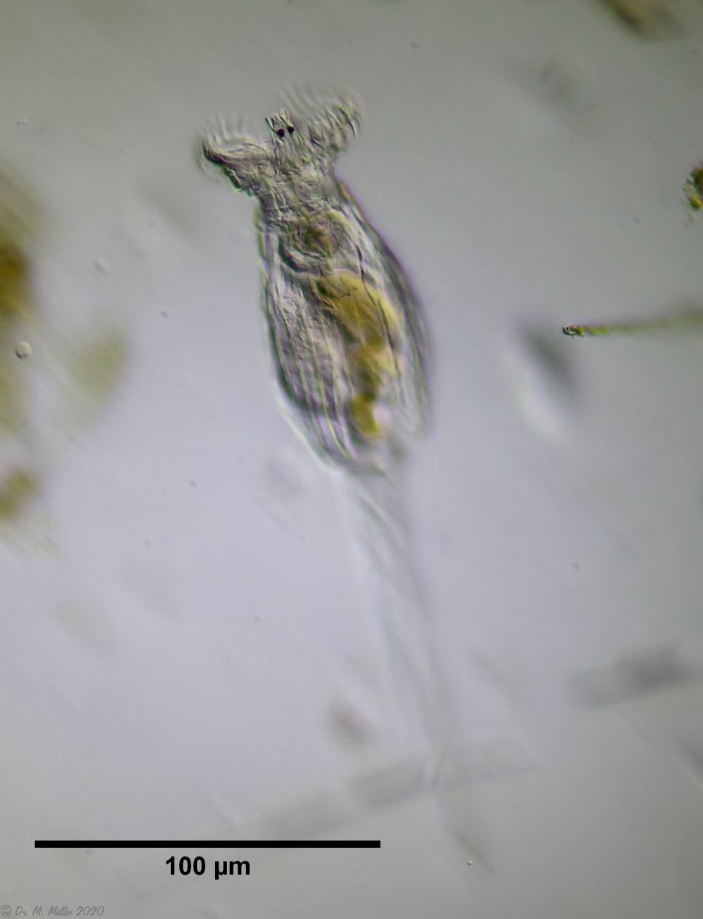 9. Möglicherweise Philodina oder Macrotrachela (Details (Mastax/ Fuß) fehlen);