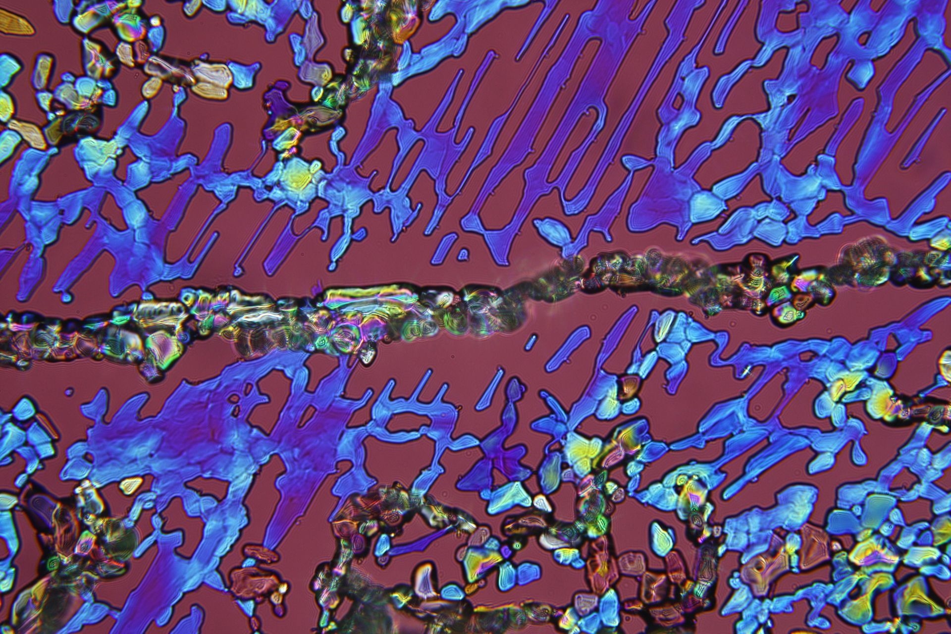 ich erinnere mich, dass in einem Beitrag nach der Ursache für Farbunterschiede bei Pol-Aufnahmen mit verschiedenen Vergrößerungen gefragt wurde. Leider finde ich den Beitrag nicht mehr. Ich habe aber daraufhin selbst mal ein paar Aufnahmen (von Harnstoffkristallen) mit polarisiertem Licht gemacht. Beleuchtung und Einstellungen sind für alle Aufnahmen gleich.