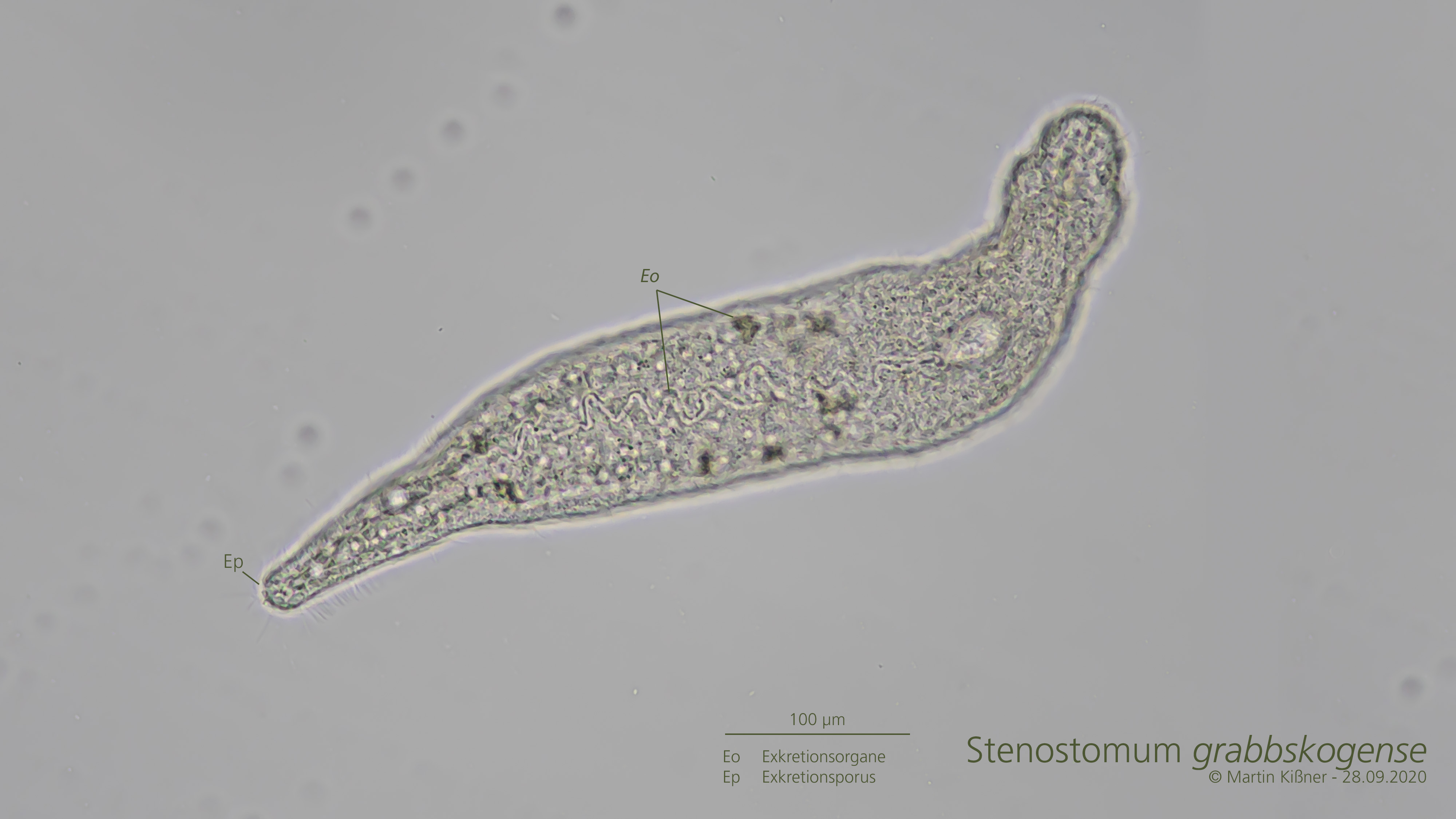Nach langer Recherche und Befragung von Experten bin ich zur vorsichtigen Erkenntnis gelangt, meinen Strudelwurm als Stenostomum grabbkskogense Luther 1960 zu identifizieren.