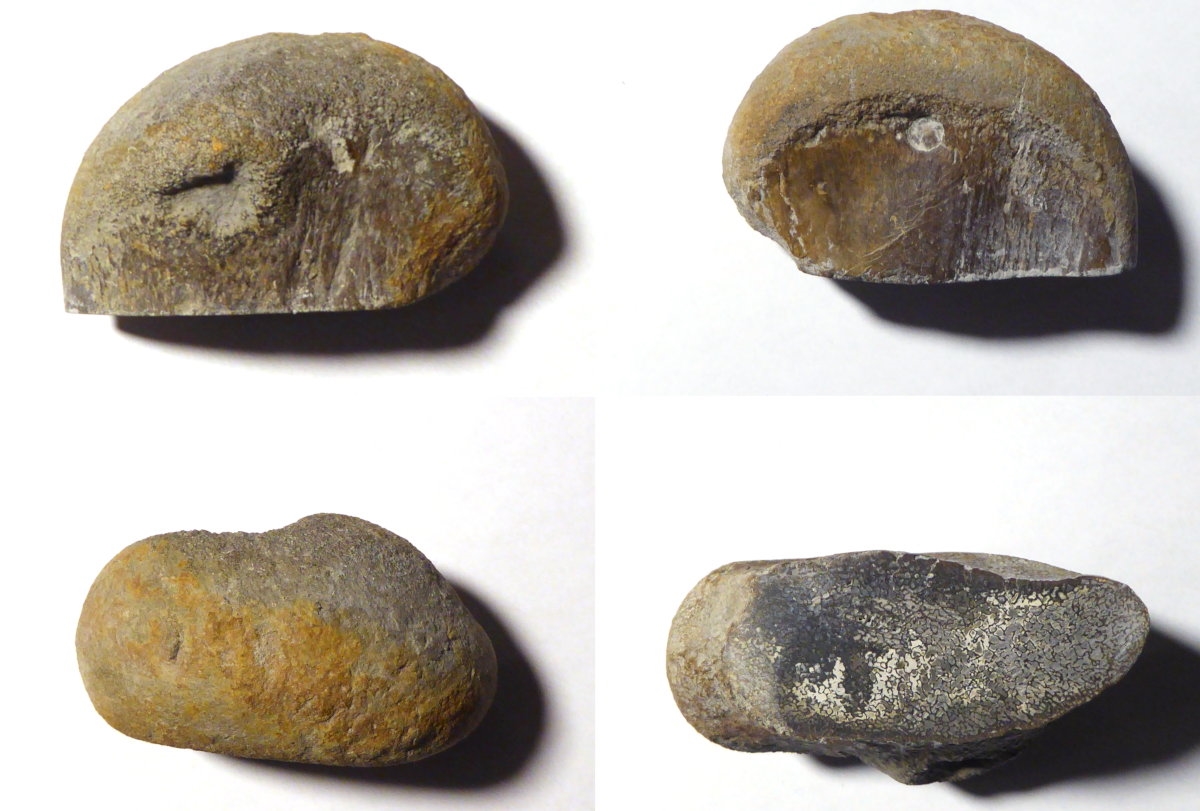In diesem Fall war das eine sehr lange geplante Exkursion mit zahlreichen langjährigen Freunden und ortskundigem Führer. Da wurde sicherlich weit über eine Tonne Ton bewegt, an dem Tag. Dort fällt eigentlich jeder "Stein" auf, denn da gibt es außer Fossilien nur Ton. Alles was kein Ton ist, ist verdächtig. Der Knochen war auch noch ein Stück länger als auf den Fotos und so recht deutlich als solcher zu erkennen. Die Bilder habe ich wie geschrieben erst nach dem Schneiden gemacht. Ich war mir eigentlich sicher ohnehin ein Foto von frisch gefundenen Knochen zu haben, aber das hat sich leider als Irrtum herausgestellt.