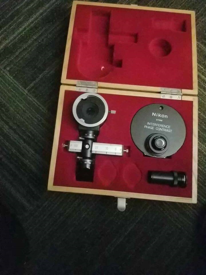 NIKON beherrschte aber die Vergütungstechnologien nicht so wie CZJ beim Interphako oder JENAVAL Kontrasttubus und das System hatte keinen besonders guten Polarisationserhalt. Das war durch ein DDR- Patent von 1967 geschützt und nachbauen hätte das damals sowieso niemand können. Daher war die Einrichtung etwas lichtschwach und umständlich zu benutzen. Es ist auch recht bald wieder vom Markt verschwunden. Kam eigentlich mit einer kleinen weißen Bedienungsanleitung und 2 Farbfiltern.