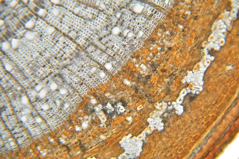 Bild 25 Übersicht, fixierte Probe, ungefärbter Schnitt, Ermans Birke Betula ermanii