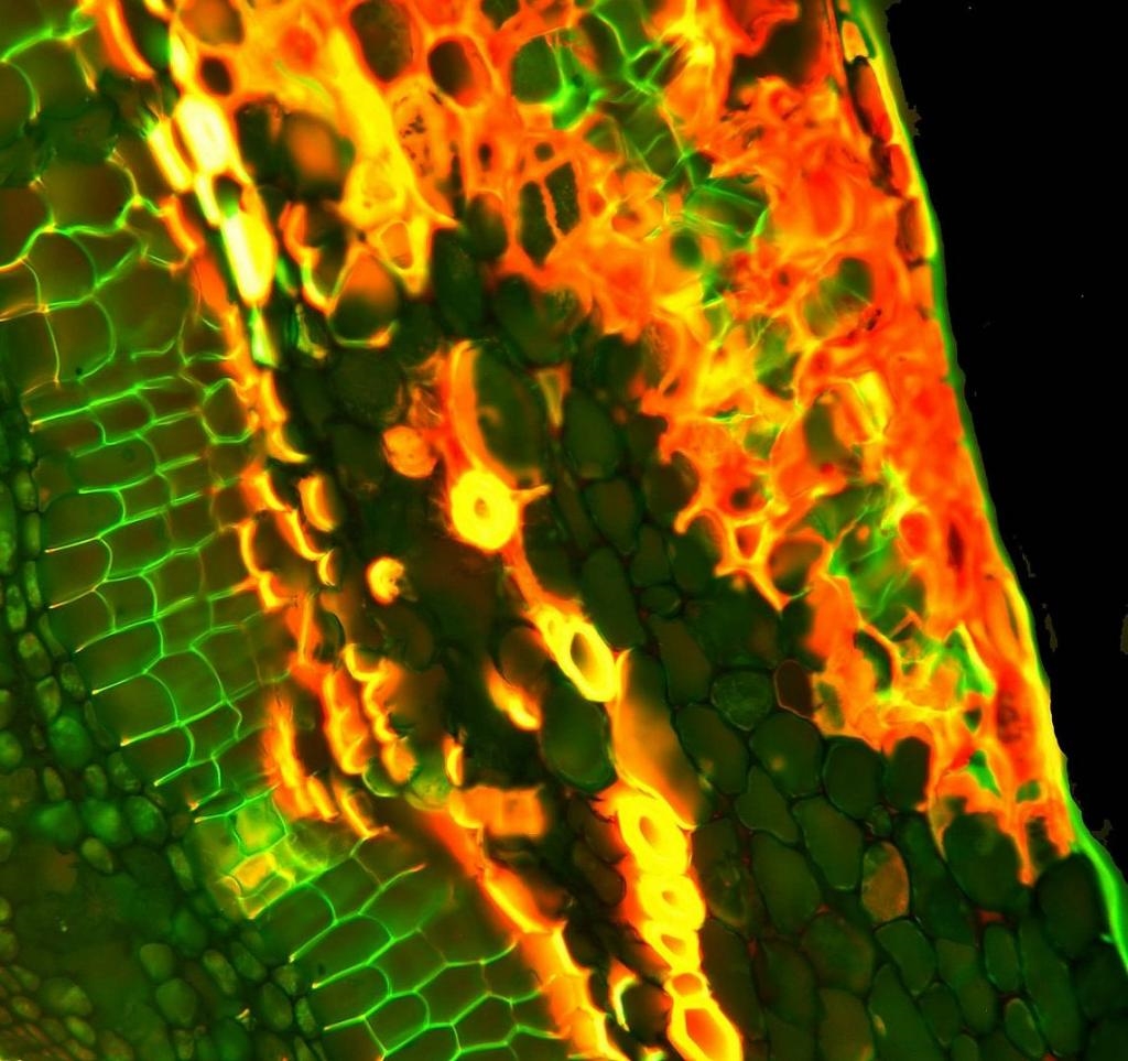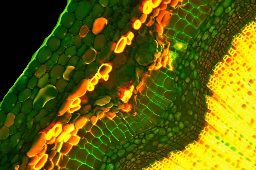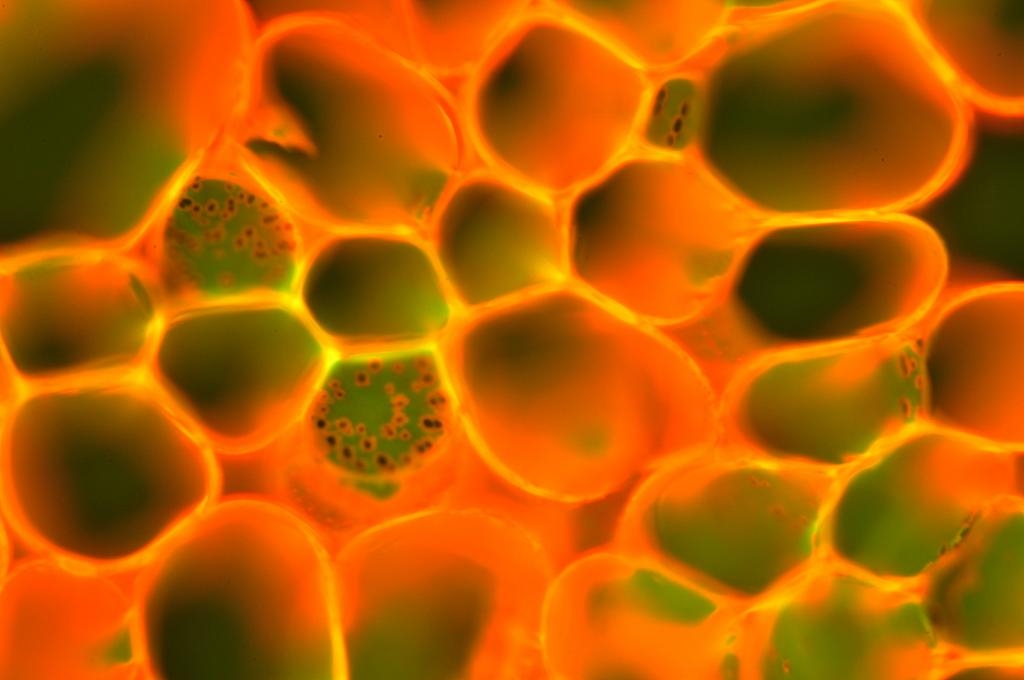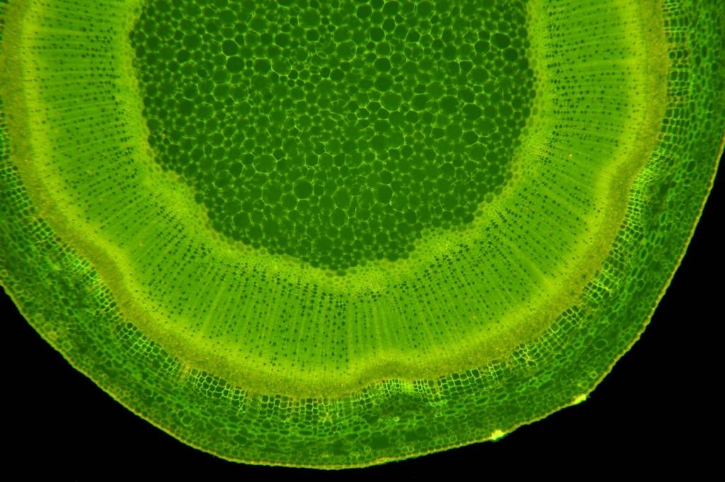 Bild 18 Markparenchym, Zentrum, Auflichtbeleuchtung Fluoreszenz, Koreanische Abelie Abelia mosanensis