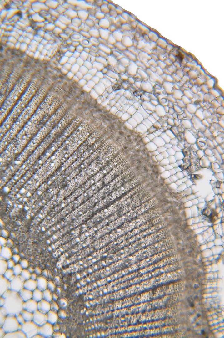 bei dem "?" handelt es sich m. M. wieder um ein, unter der Rinde entstehendes Phellem, die anderen Elemente des Periderms sind, denke ich, ebenfalls gut erkennbar. Das ist meine Interpretation. Um eine klare Antwort zu erhalten, müsstest Du wohl noch ältere Spross-Abschnitte schneiden.