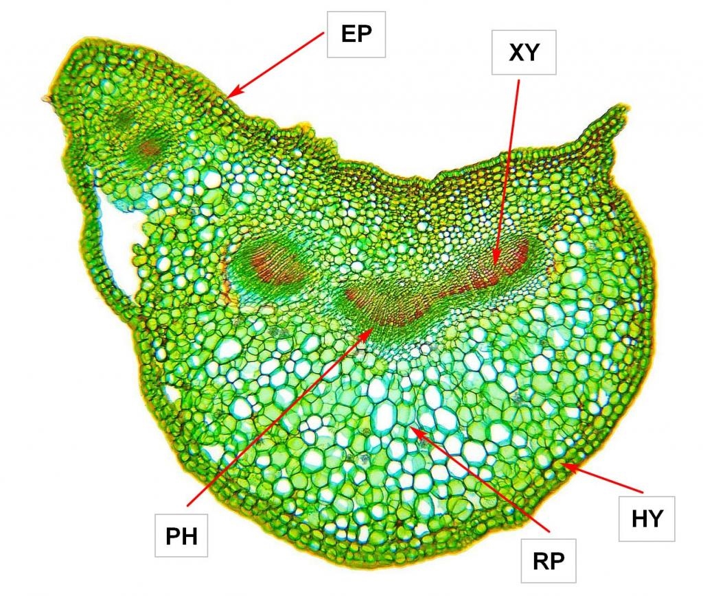 PH = Phloem, EP = Epidermis, RP = Rindenparenchym, XY = Xylem, HY = Hypodermis