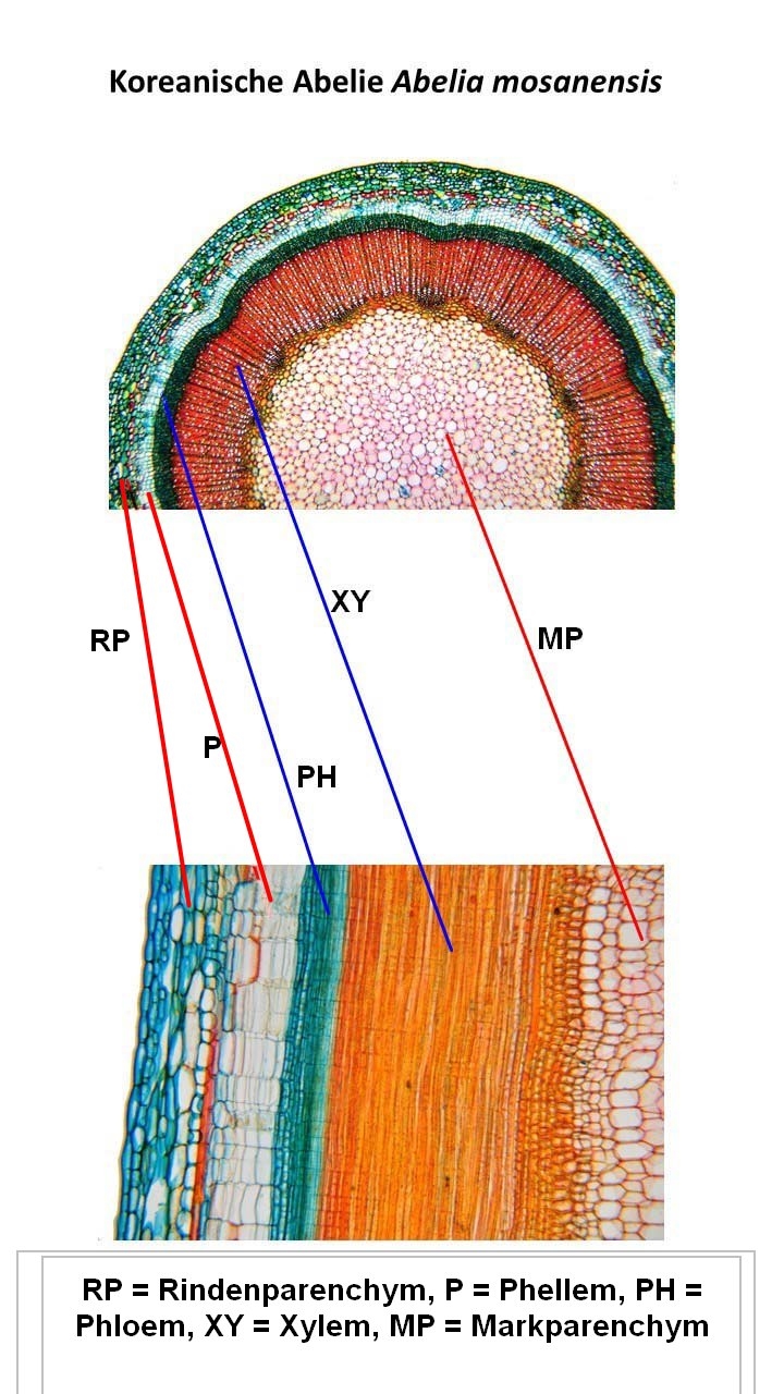 Bild 28 Querschnitt – Längsschnitt mit Beschriftung, Koreanische Abelie Abelia mosanensis