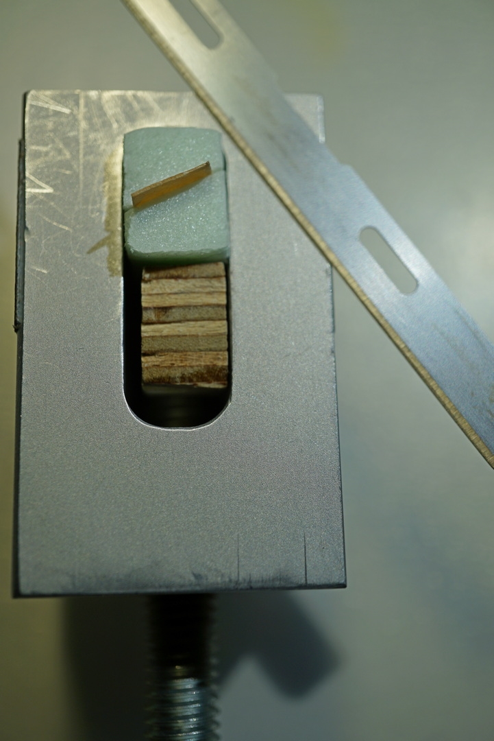 Das Bild zeigt, wie ich das Blatt im Probenhalter eingespannt habe.