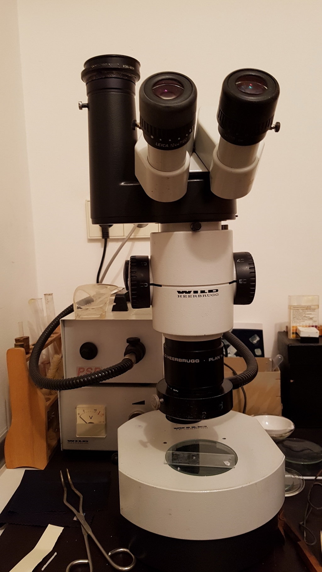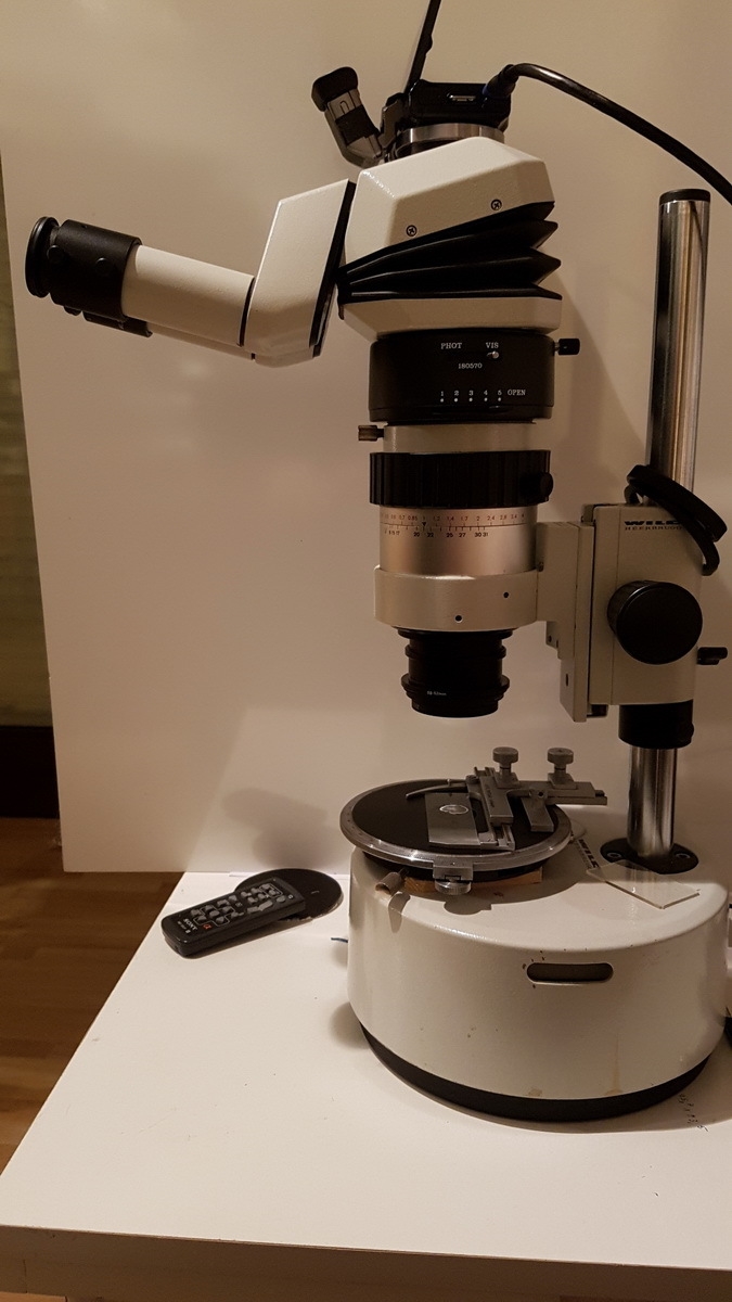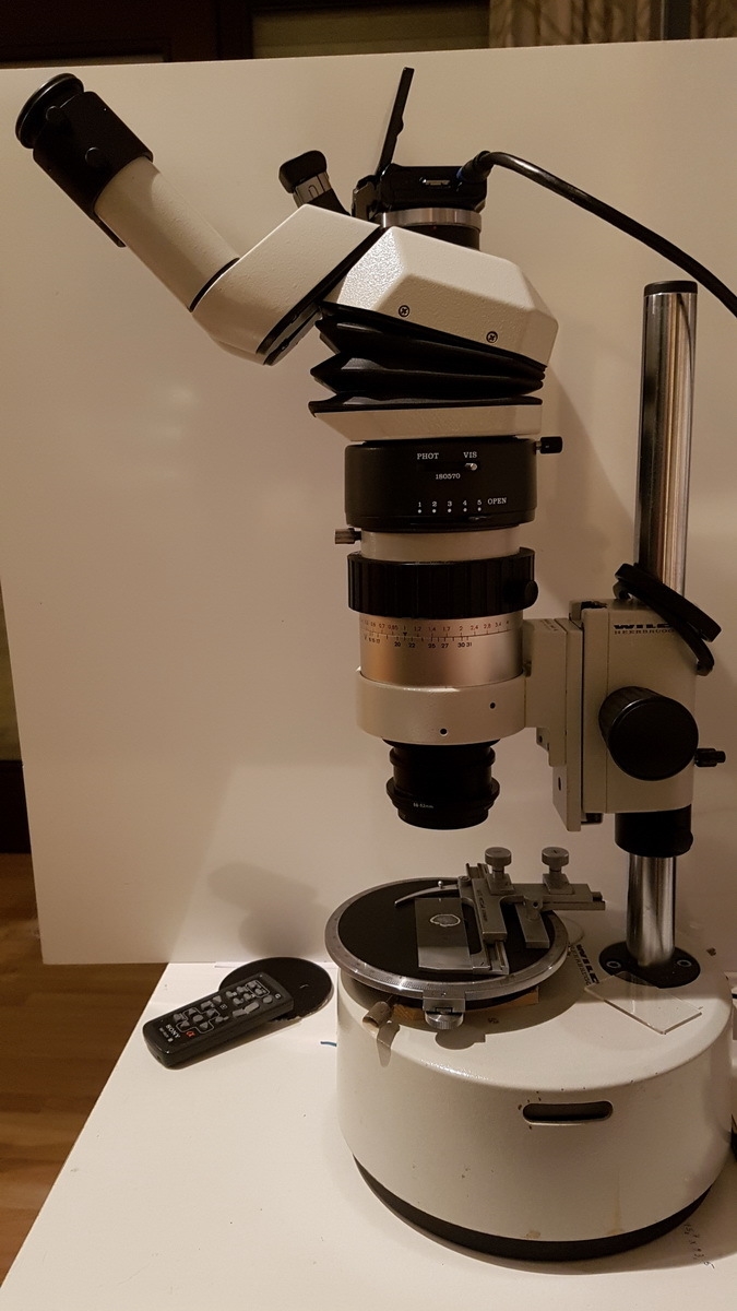 für mich ist die Ergonomie sehr wichtig. Beim Arbeiten am Mikroskop müssen Tischhöhe und Stuhlhöhe passen, der Einblick in entspannter Sitzhaltung möglich und die 10-er Okulare für meine Brille sehr gut geeignet sein. Es hört sich merkwürdig an, aber auch meine Nase muss sich zwischen den Okularen wohl und nicht eingeklemmt fühlen. So hat sich im Laufe der Zeit diese Zusammenstellung mit einem Wild M7S als optimal erwiesen.