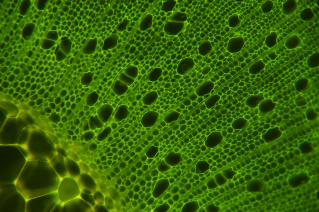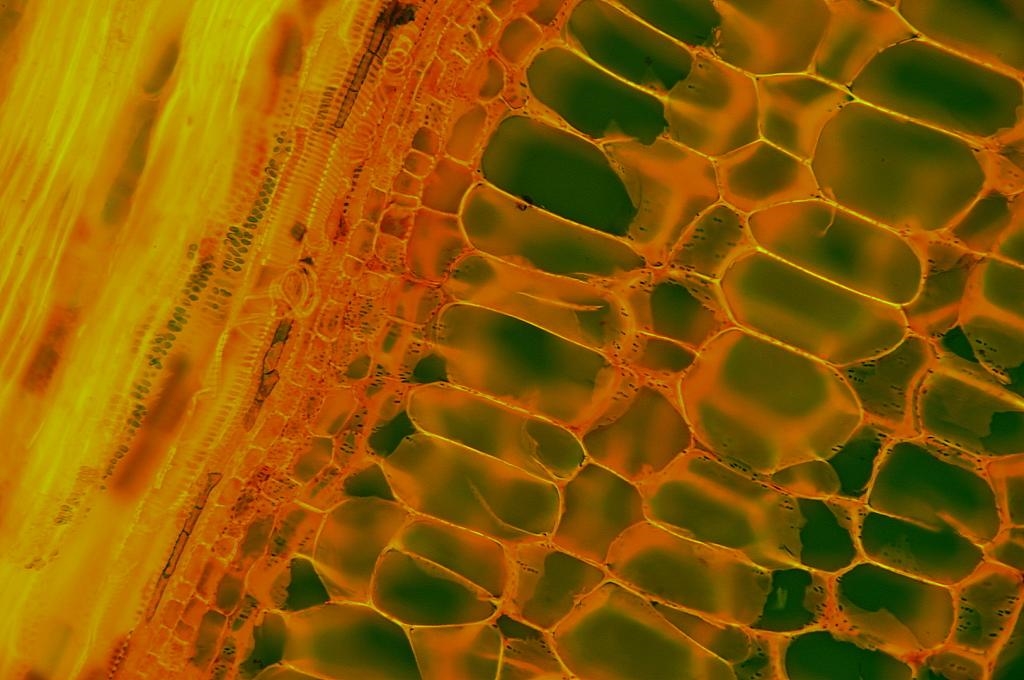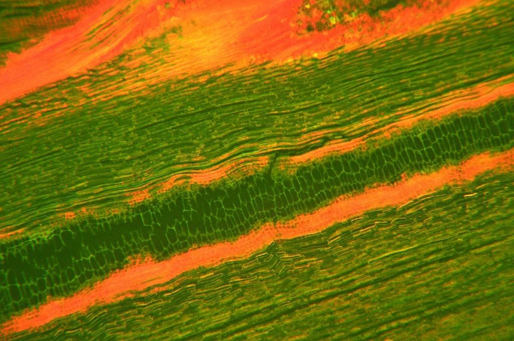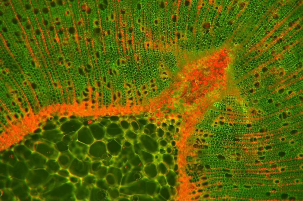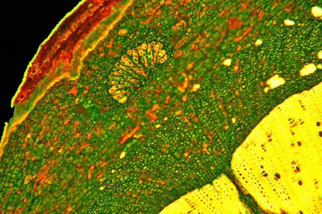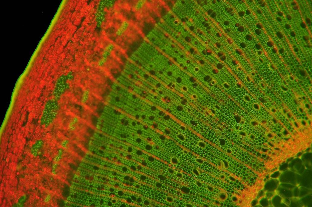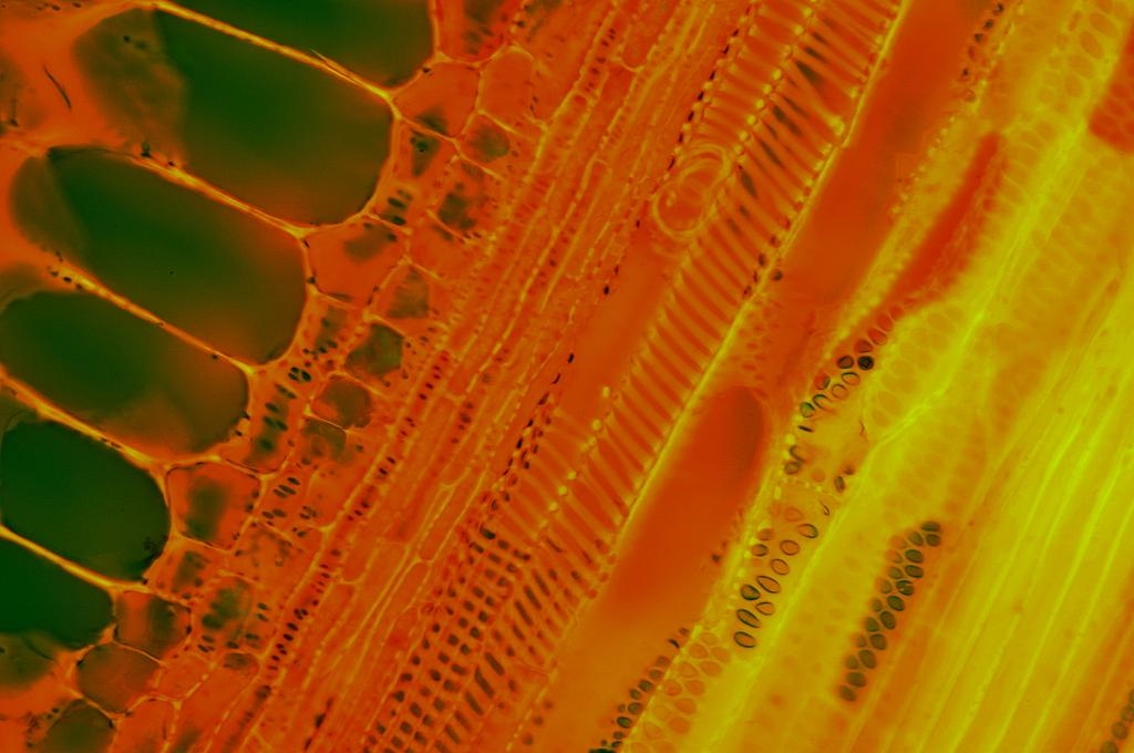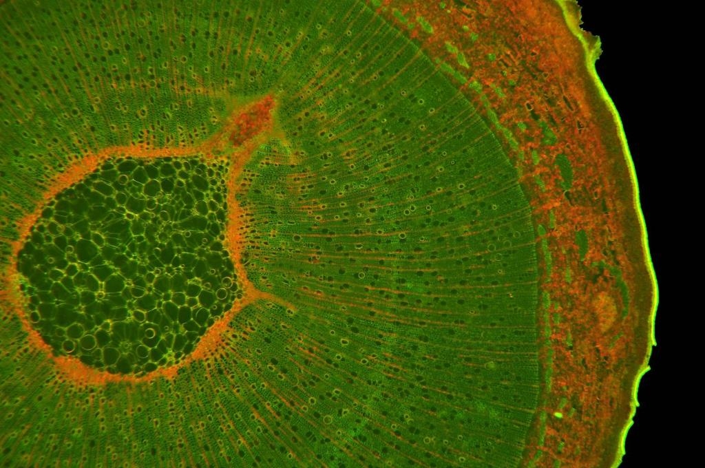 Bild 26 Xylem, Auflichtbeleuchtung Fluoreszenz, Hängende Sal-Weide Salix caprea 'Pendula'