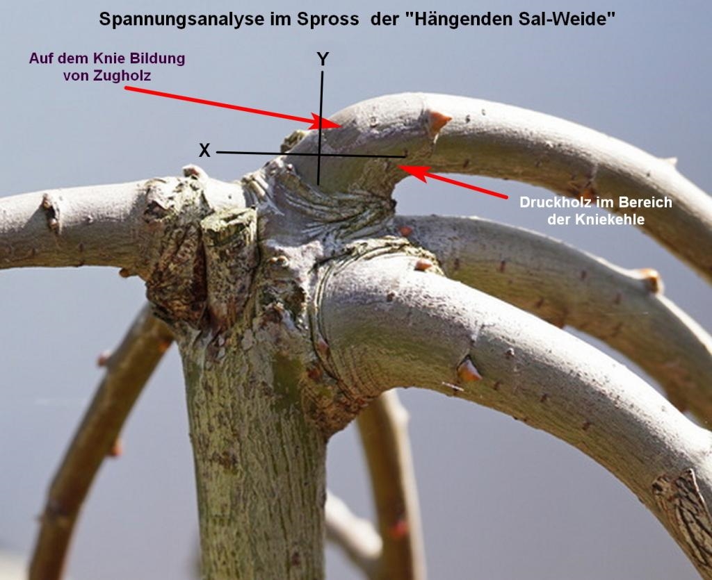 Bild 15 Spannungsanalyse im Spross der Hängenden Sal-Weide