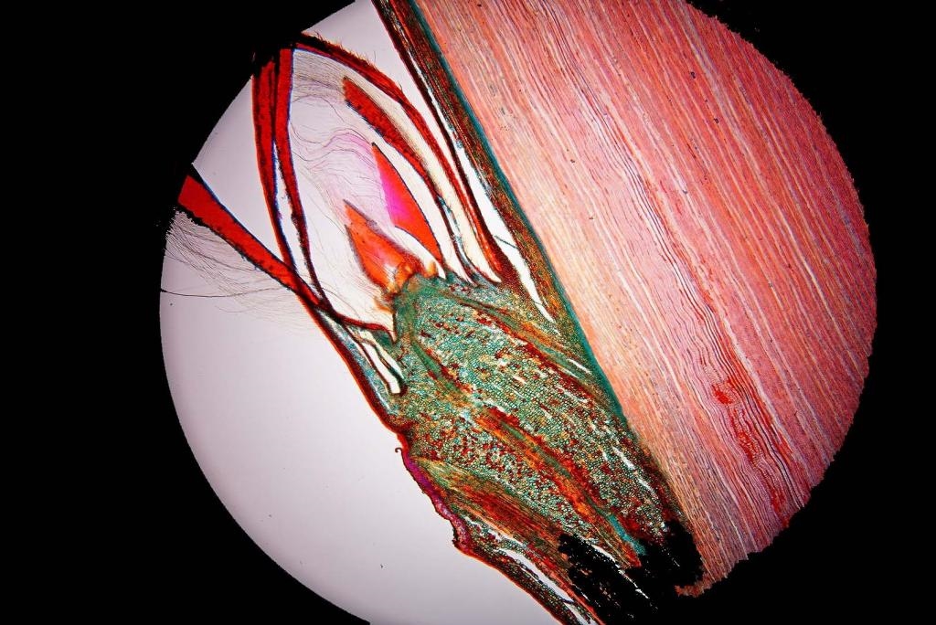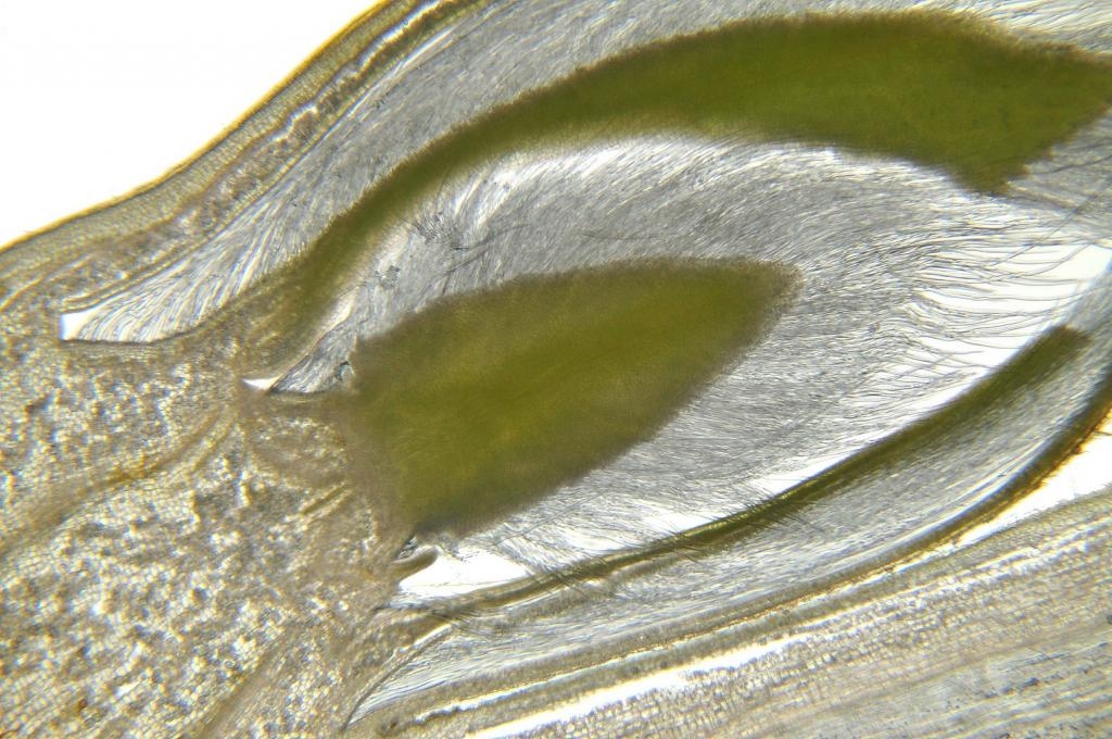 Beim Eindecken mit Euparal gab es Probleme, die feine Haare der Knospe veränderte ihre natürliche Lage. Ich habe das beste Dauerpräparat herausgesucht.