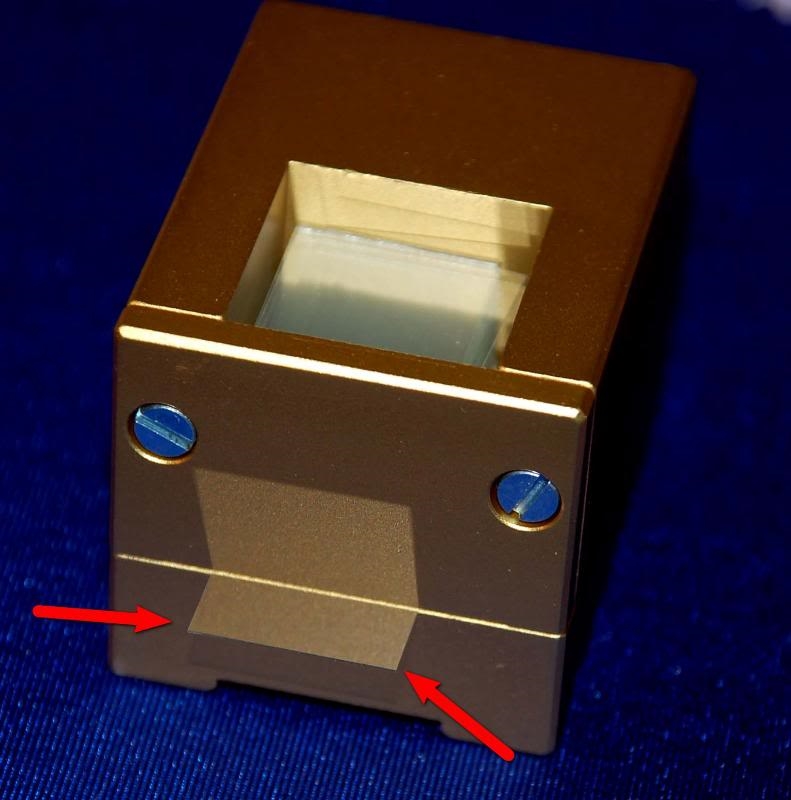 Es handelt sich um einen grundsoliden, handwerklich tadellos gefertigten elxoierten Aluminiumwürfel mit einer "Einfüllöffnung" für 0,17 mm Deckgläser von 18 bis 22 mm.
