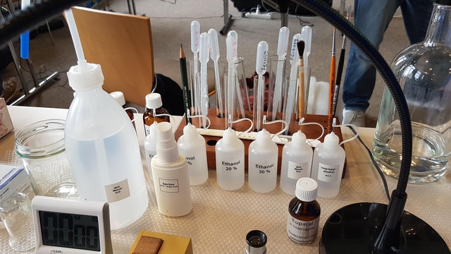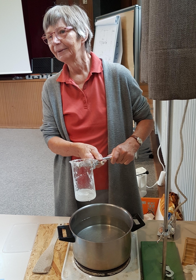 Maria Beier demonstriert das Einbetten in Glycerinseife