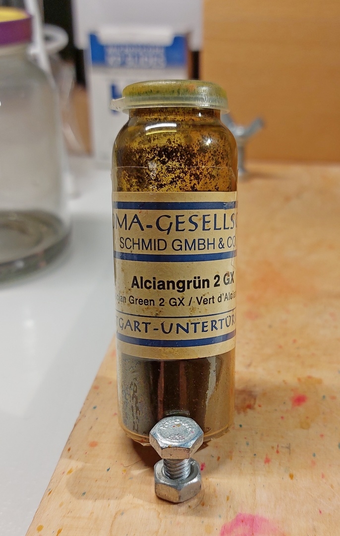 Die Etzold-grün Färbung nach Karl Brügmann setzt sich aus diesen Farbstoffen zusammen.