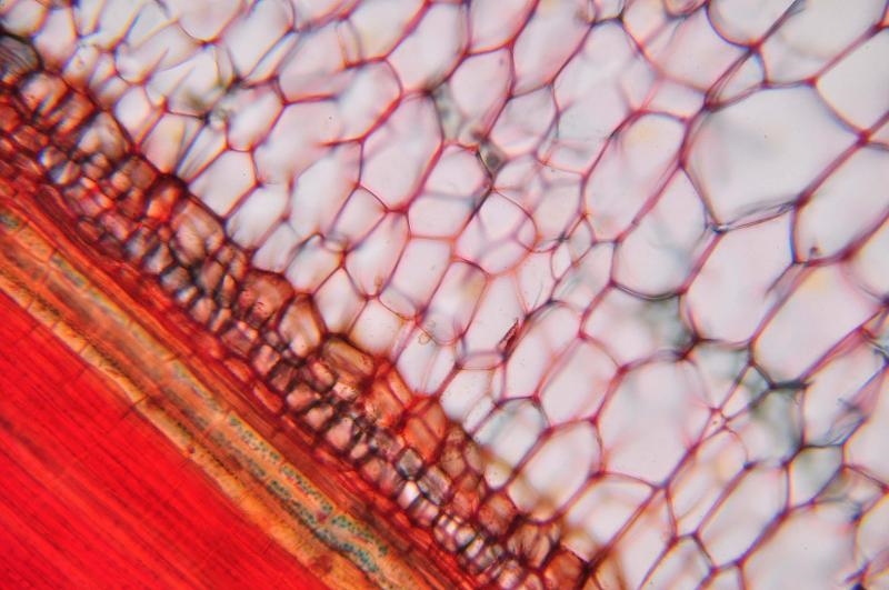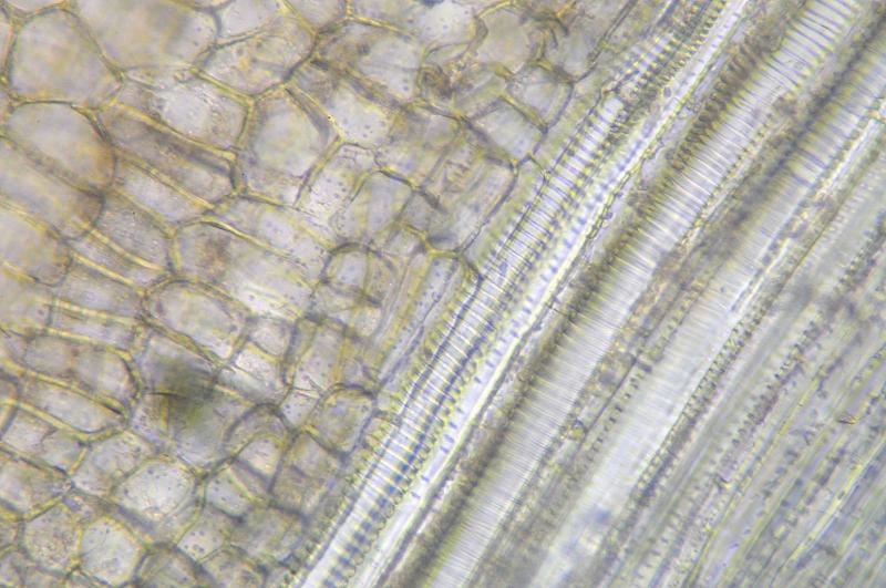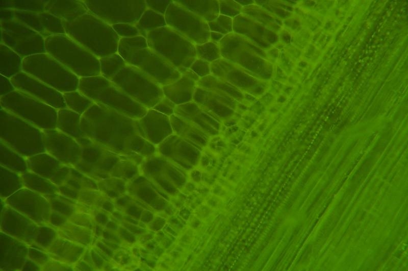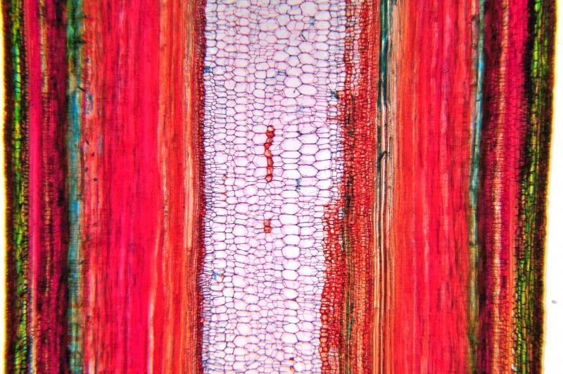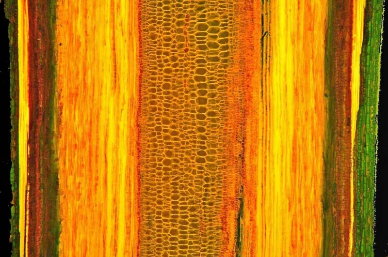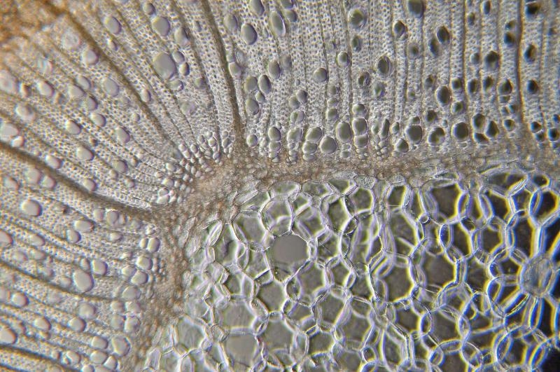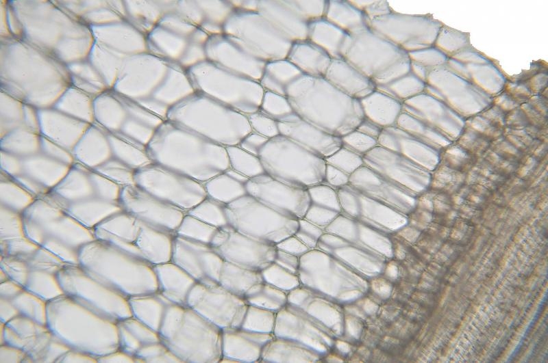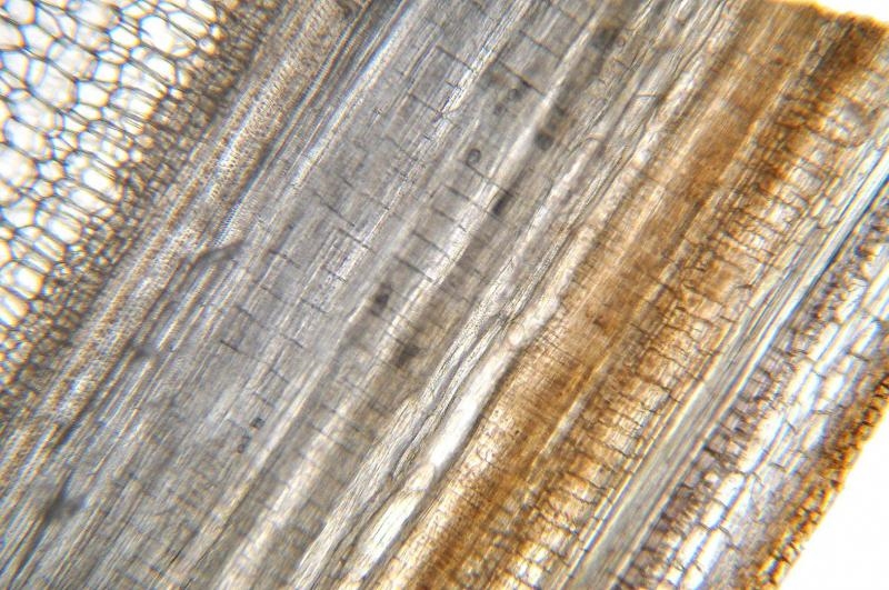 Hier liegen mehrere Zellschichten im Markparenchym übereinander, Schnittdicke 40 Mikrometer.